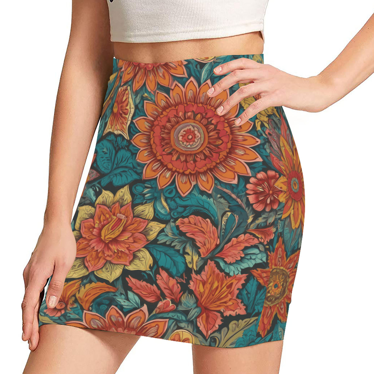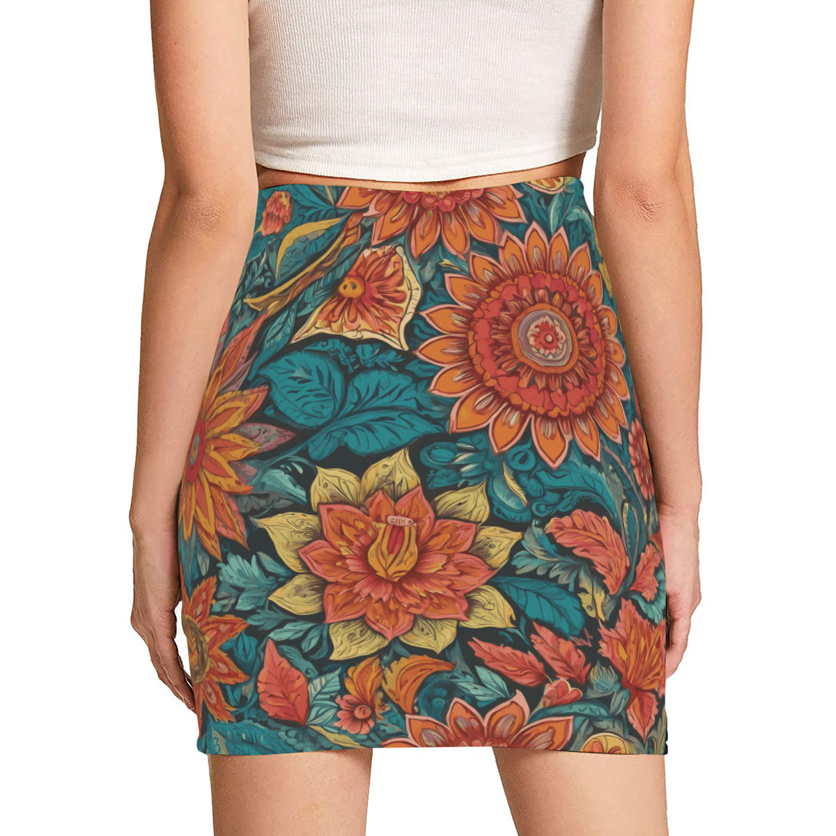 Floral Red Wrap Hip Skirt