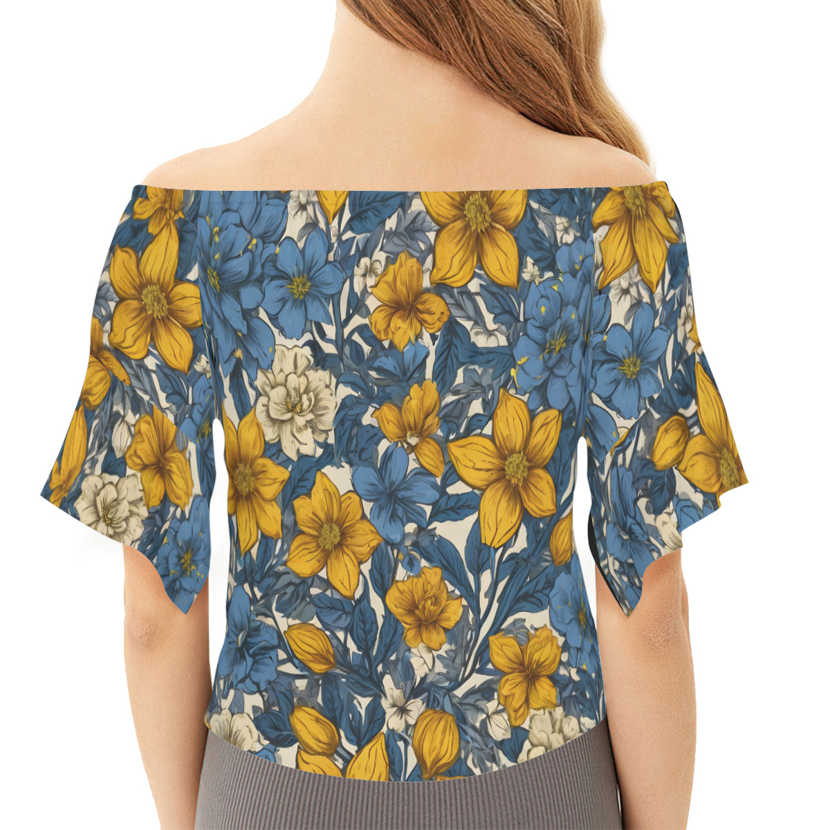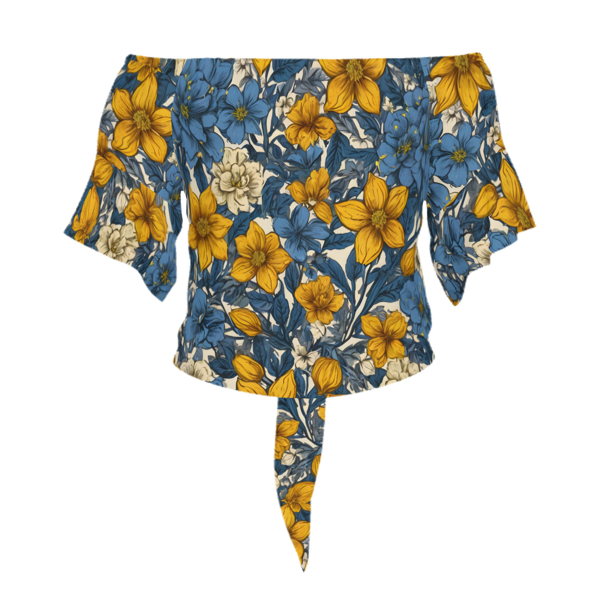 Design area: All-Over Print Floral Yellow Abstract Women's One-shoulder Tie Short Sleeves T-shirt | Polyester