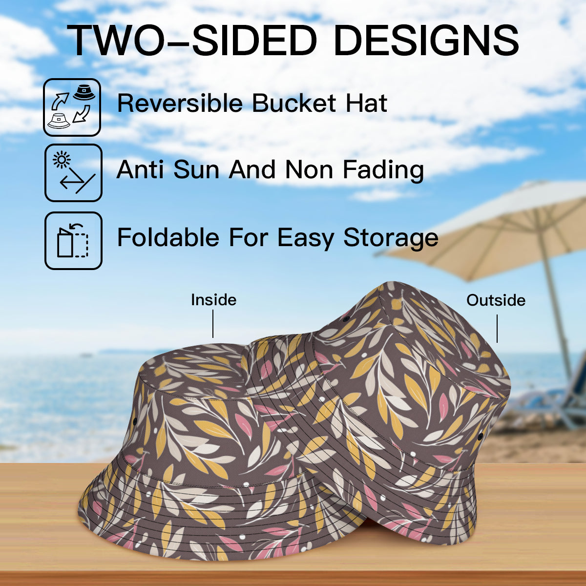 · Material description: Double-layer polyester twill fabric, delicate and skin-friendly, lightweight, breathable and foldable. · Product performance: Stylish double-sided design and printing, allowing you to wear it on both sides. Suitable for most outdoor activities, wear this comfortable hat to protect your skin from UV rays and protect your hair and eyes from the harsh sun. Simple and classic, the shape fits our facial curves and can modify the face shape. It will not be soft or crooked. It looks three-dimensional and stylish from every angle. The edge of the hat brim is designed with reflective strips, which can provide protection in the dark outdoors.