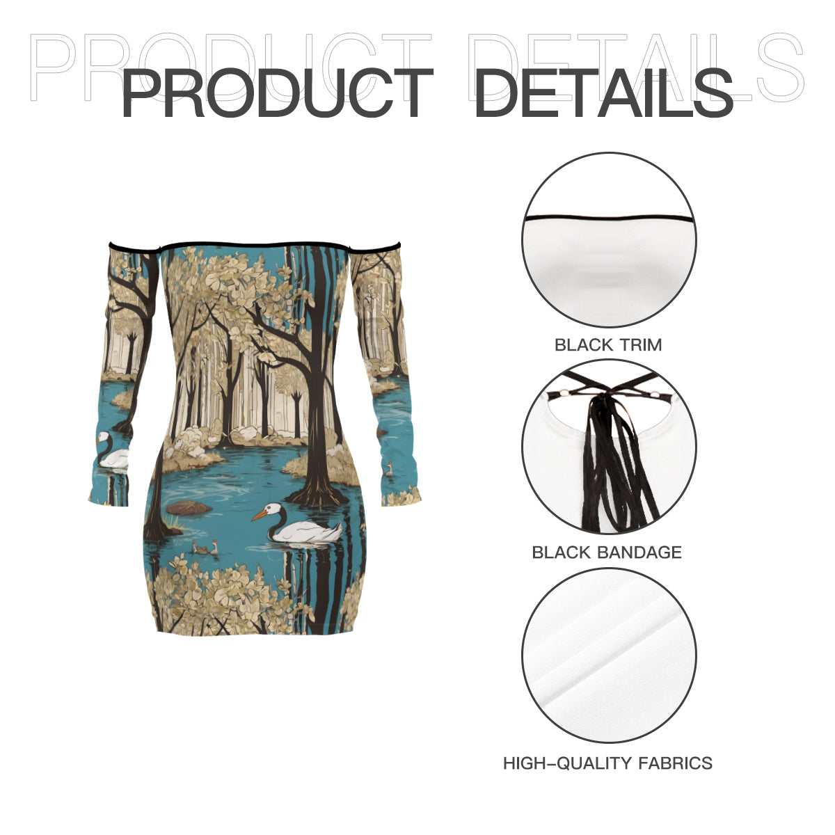 Landscape Wonder Women's Off-shoulder Back Lace-up Dress | Polyester