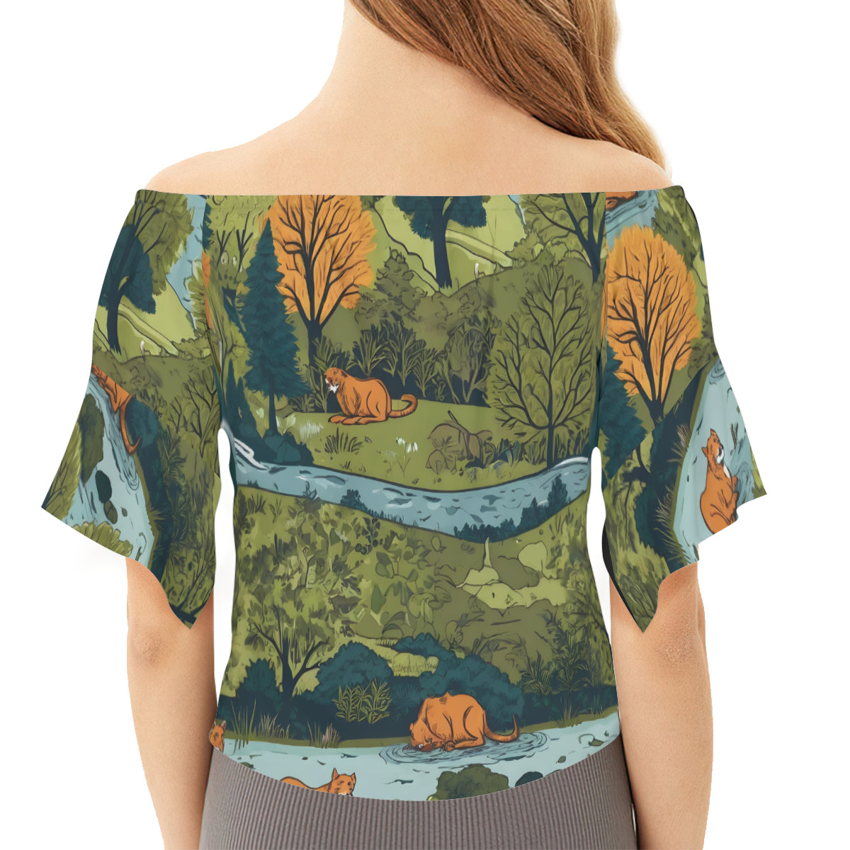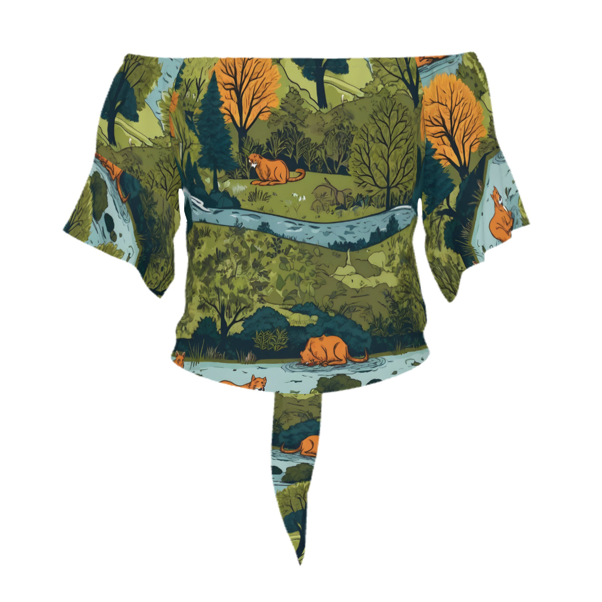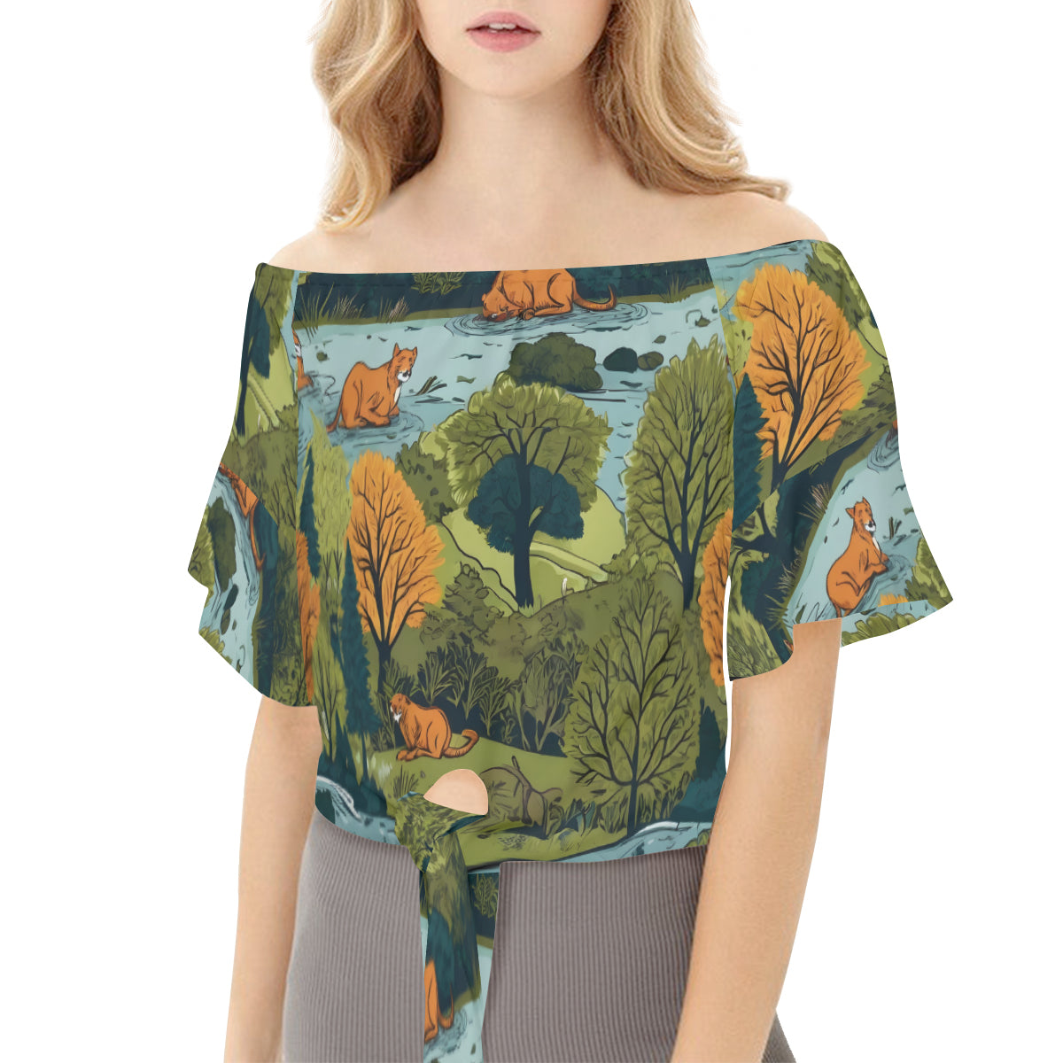 Landscape Wonder Women's One-shoulder Tie Short Sleeves T-shirt | Polyester