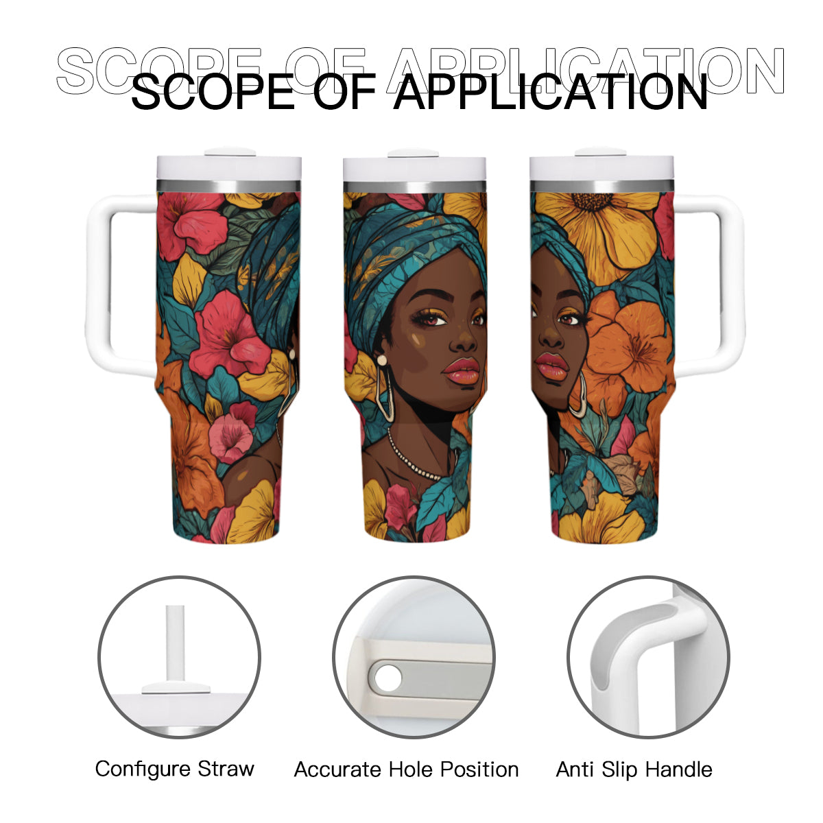 Melanin Queen Large Capacity Tumbler with Handle(1100ml/40oz) | Stainless Steel 304