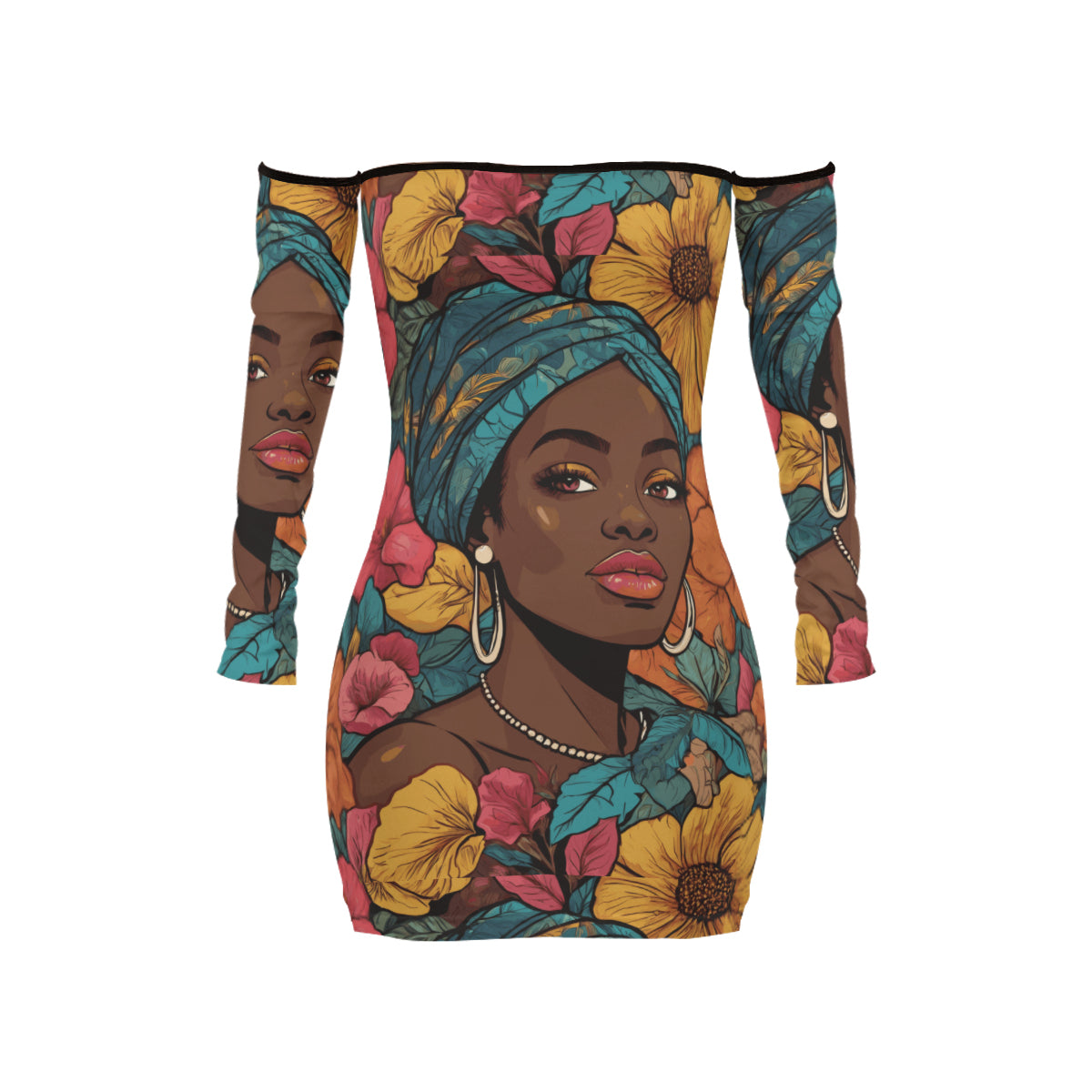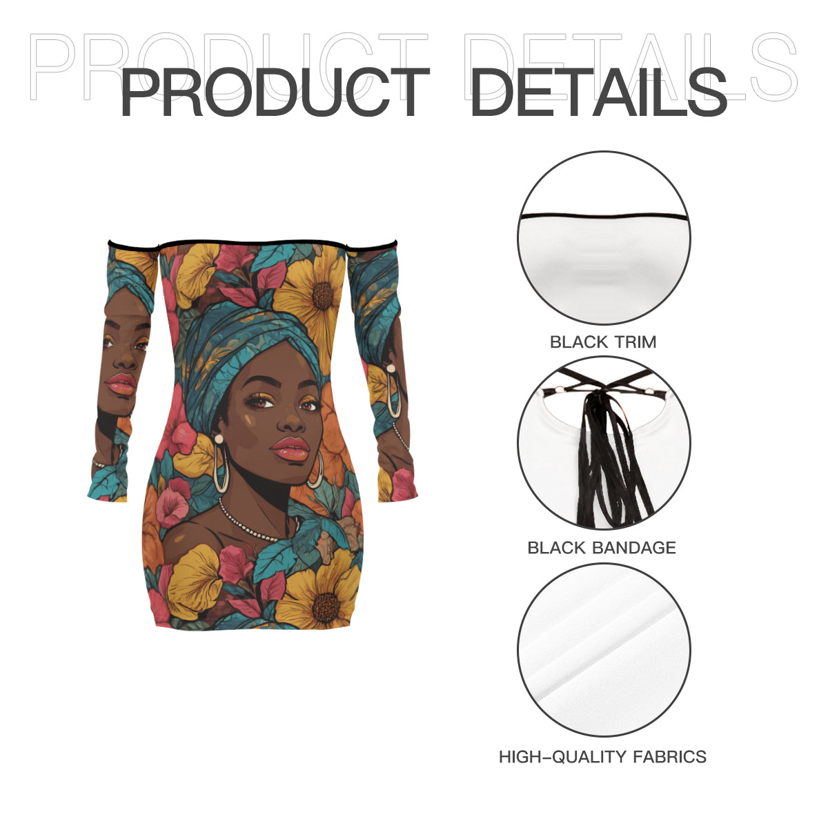 Melanin Queen Women's Off-shoulder Back Lace-up Dress | Polyester