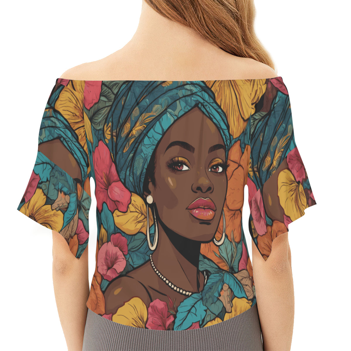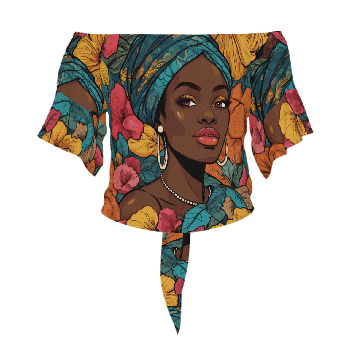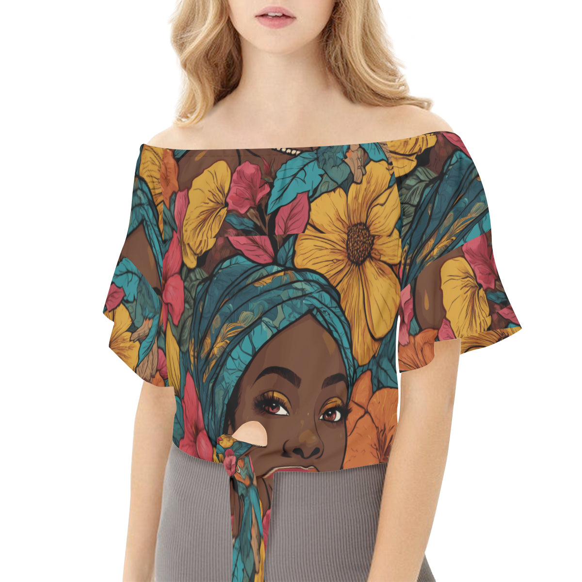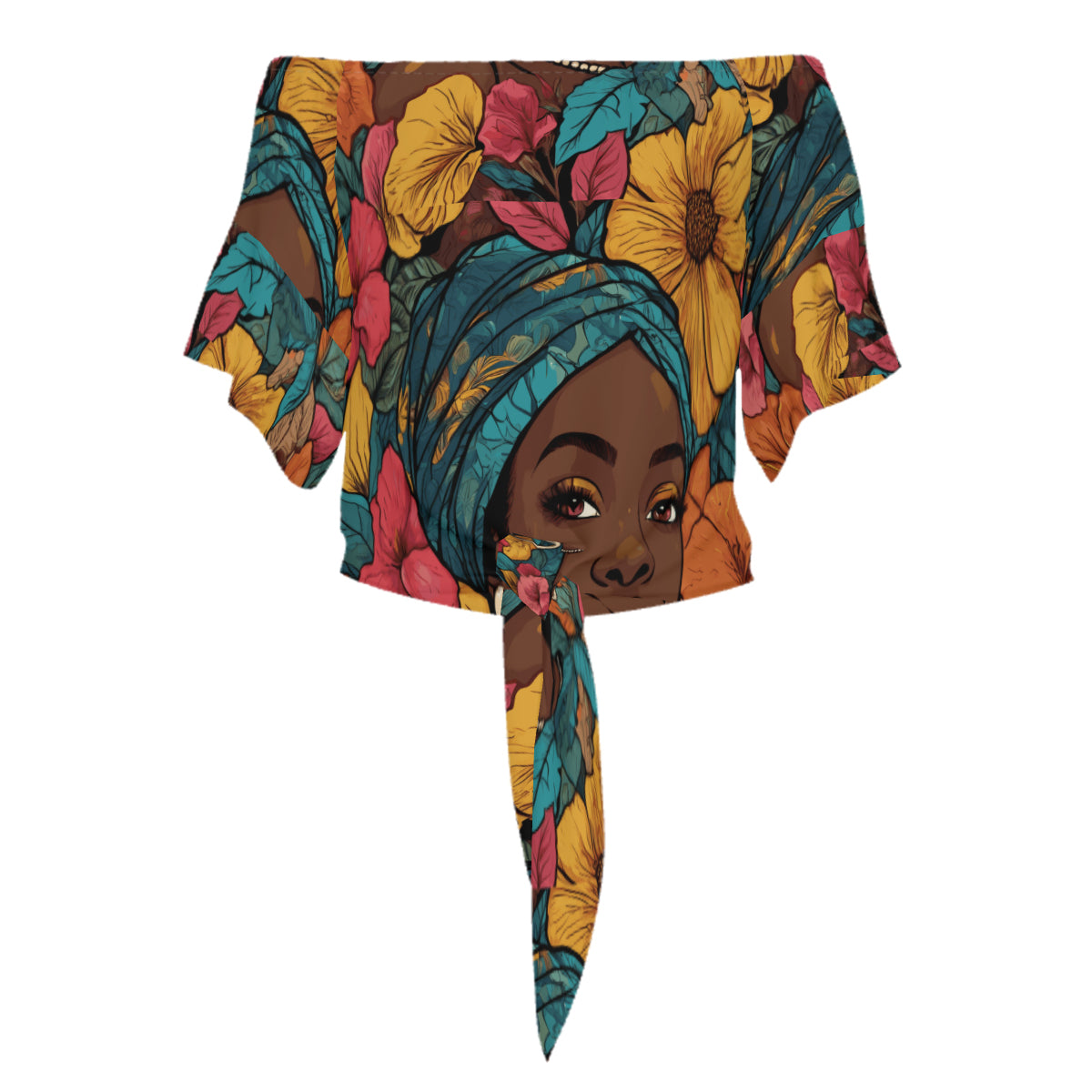 Design area: All-Over Print Melanin Queen Women's One-shoulder Tie Short Sleeves T-shirt | Polyester