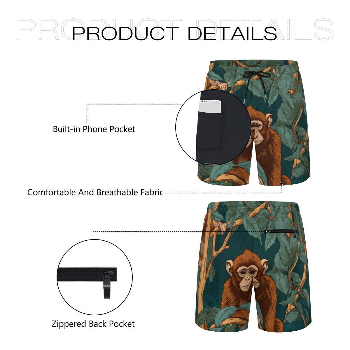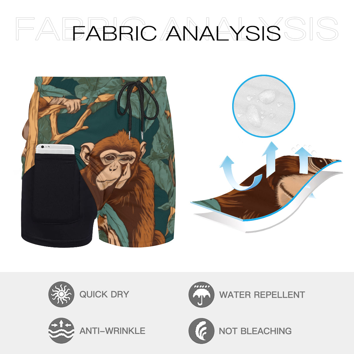 Monkey Vibes Men's Casual Shorts Double-Layer Sports Beach Shorts