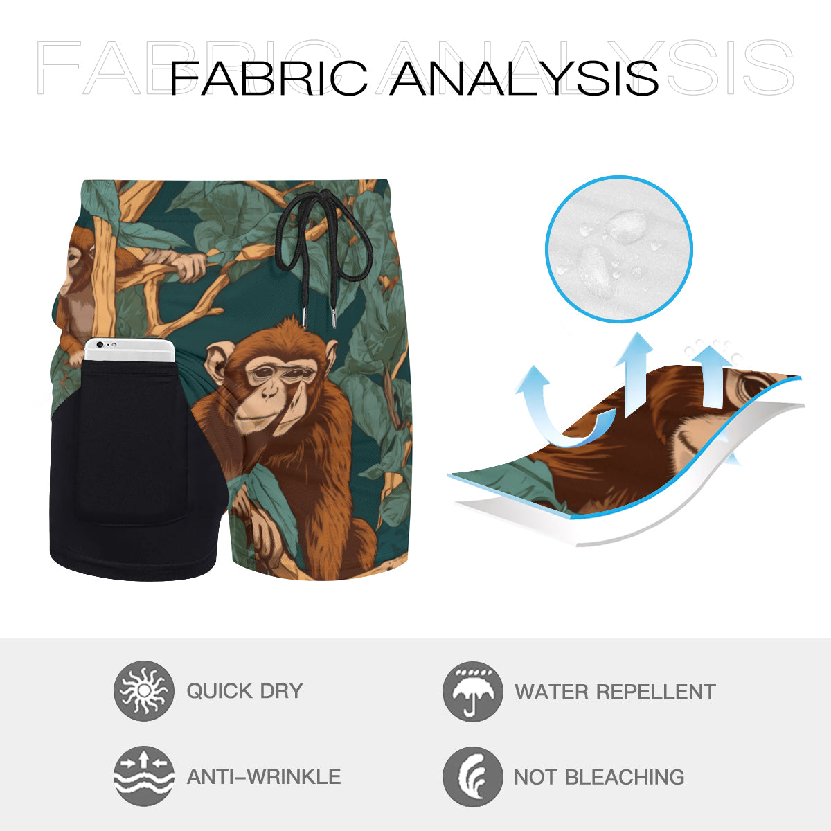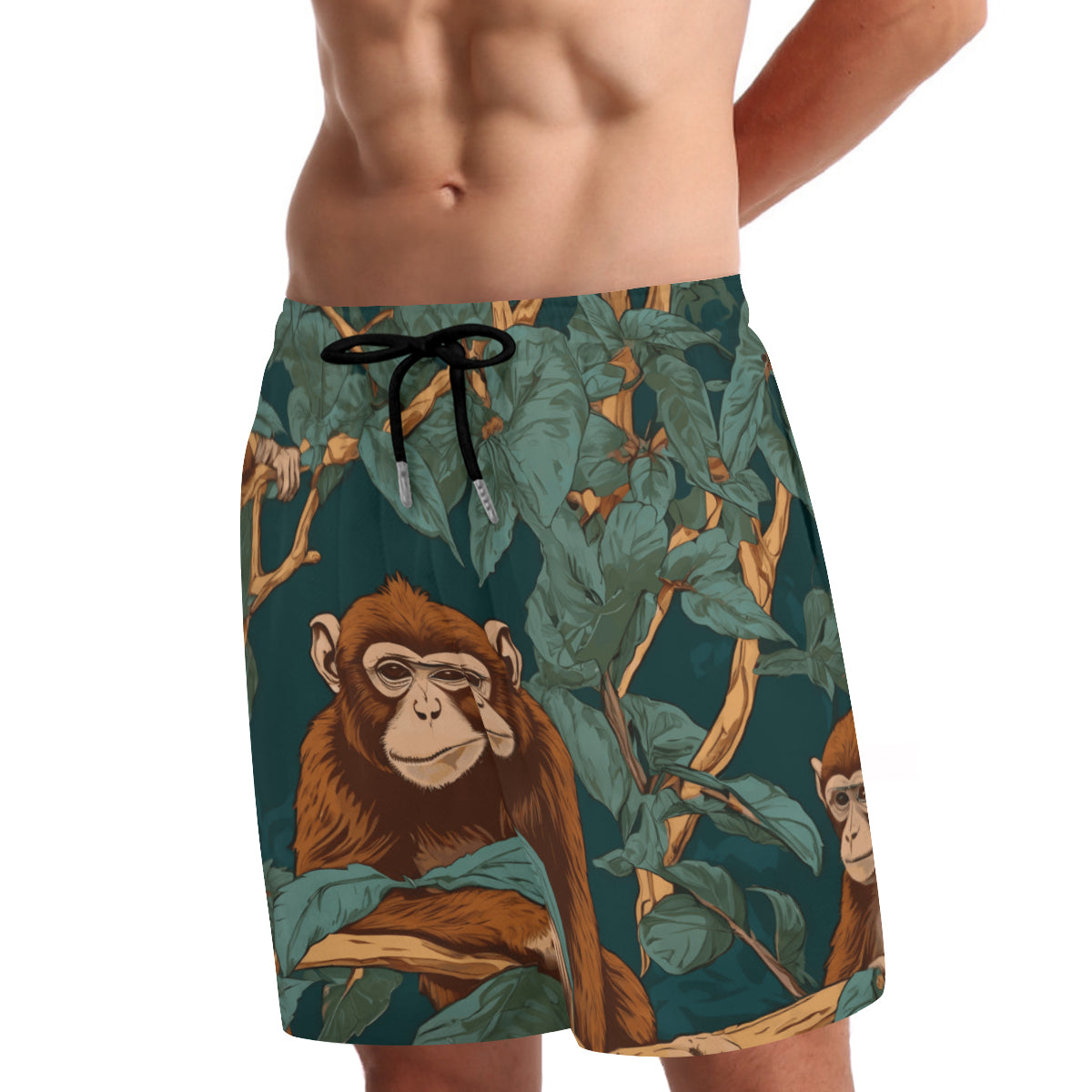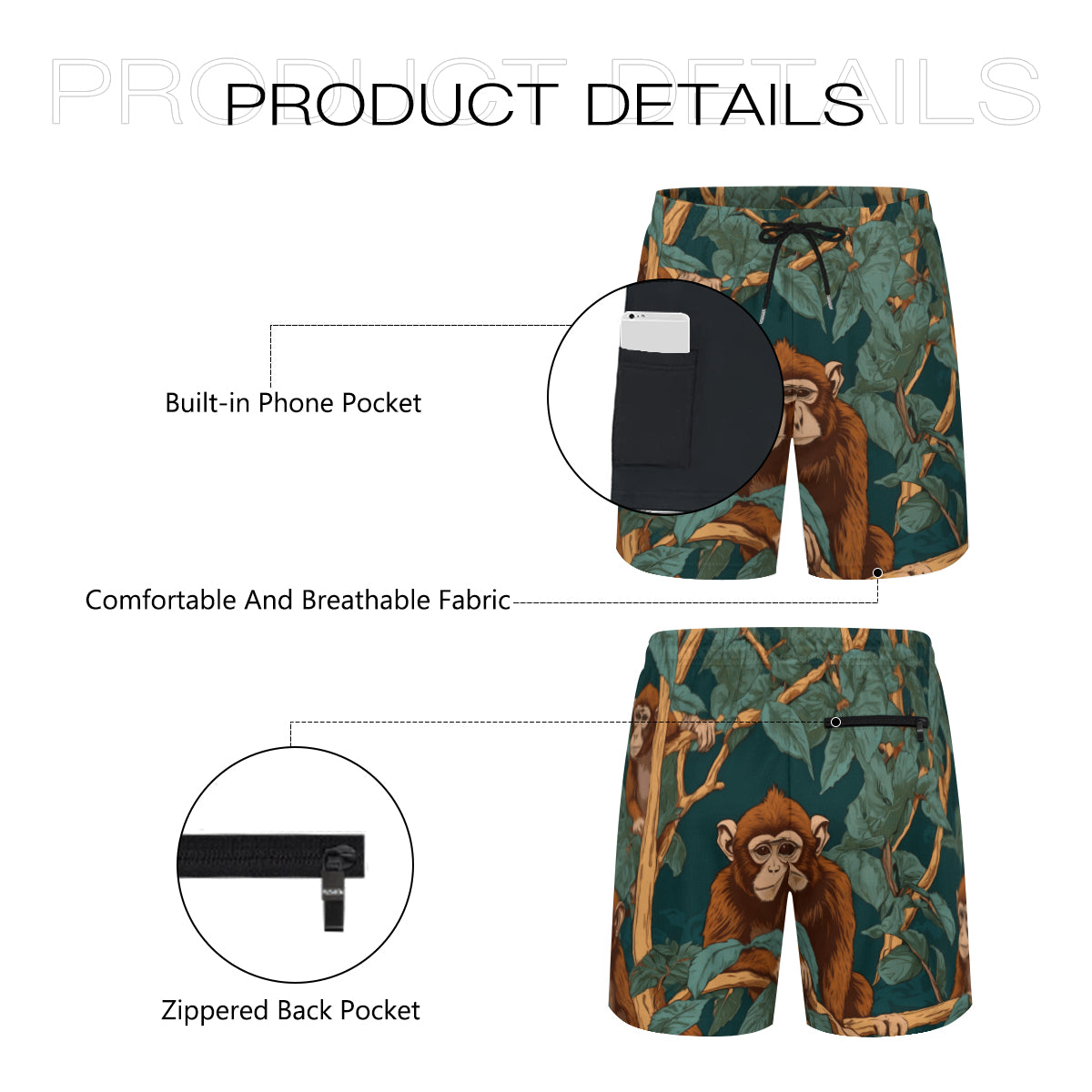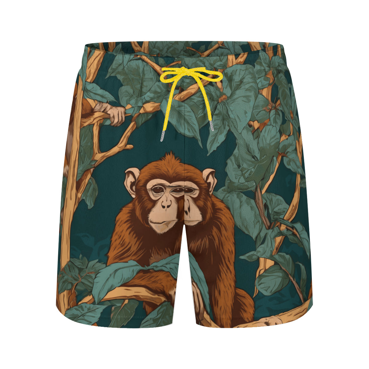Design area: full-width print Monkey Vibes All-Over Print Men's Casual Shorts Double-Layer Sports Beach Shorts | Polyester