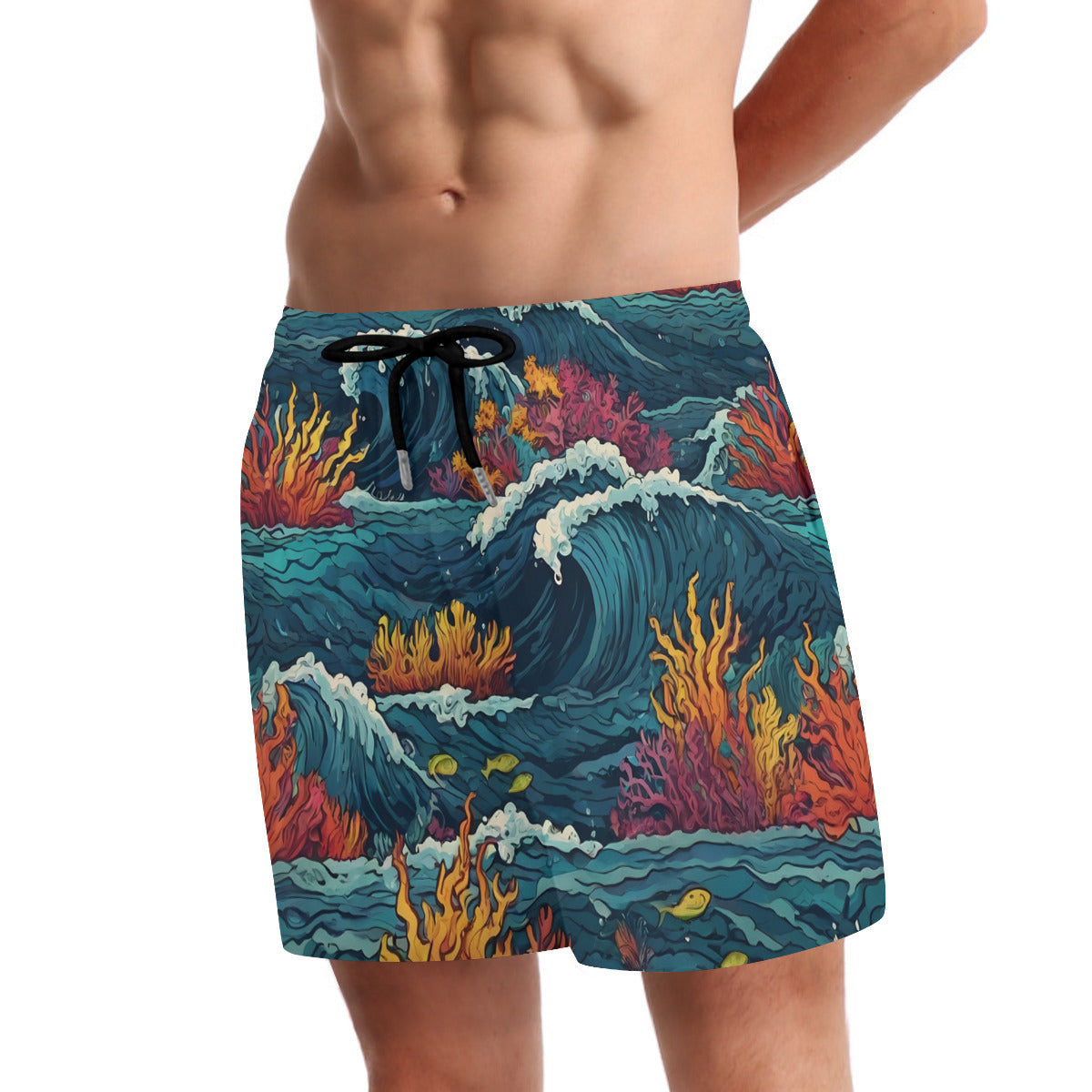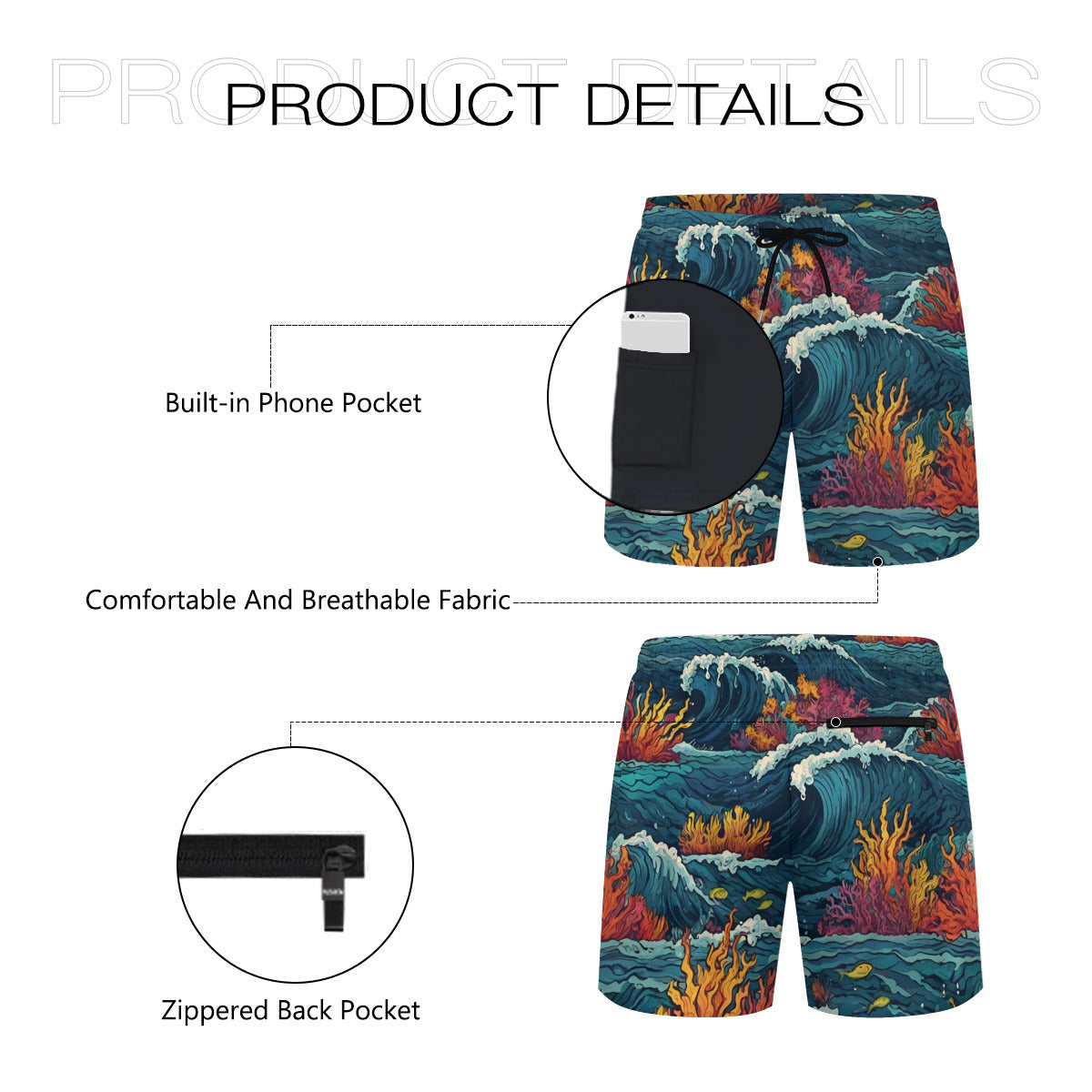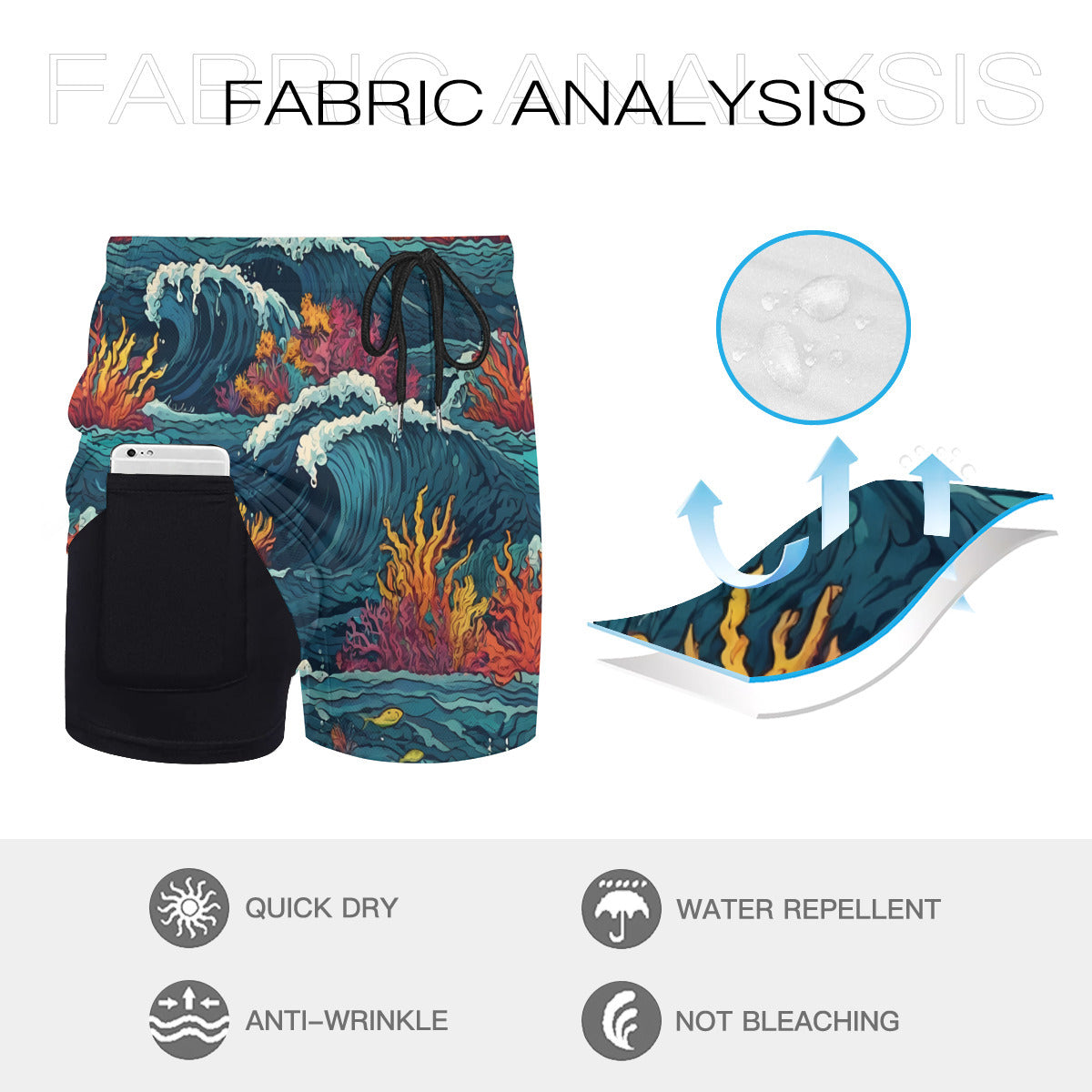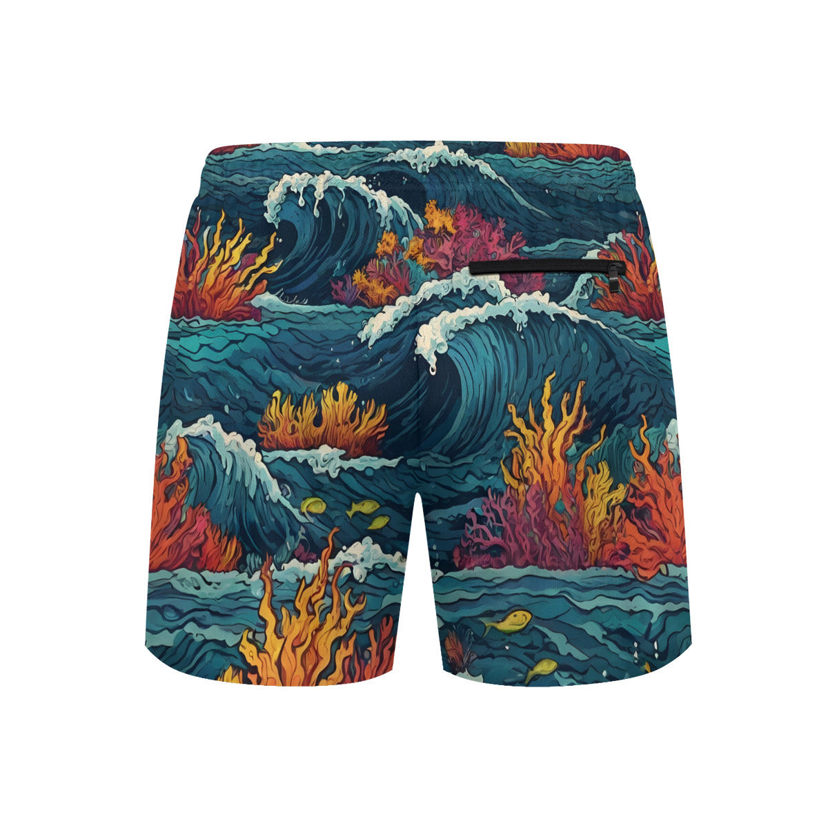 Design area: All-Over Print Ocean Waves Men's Casual Shorts Double-Layer Sports Beach Pants (Short) | Polyester