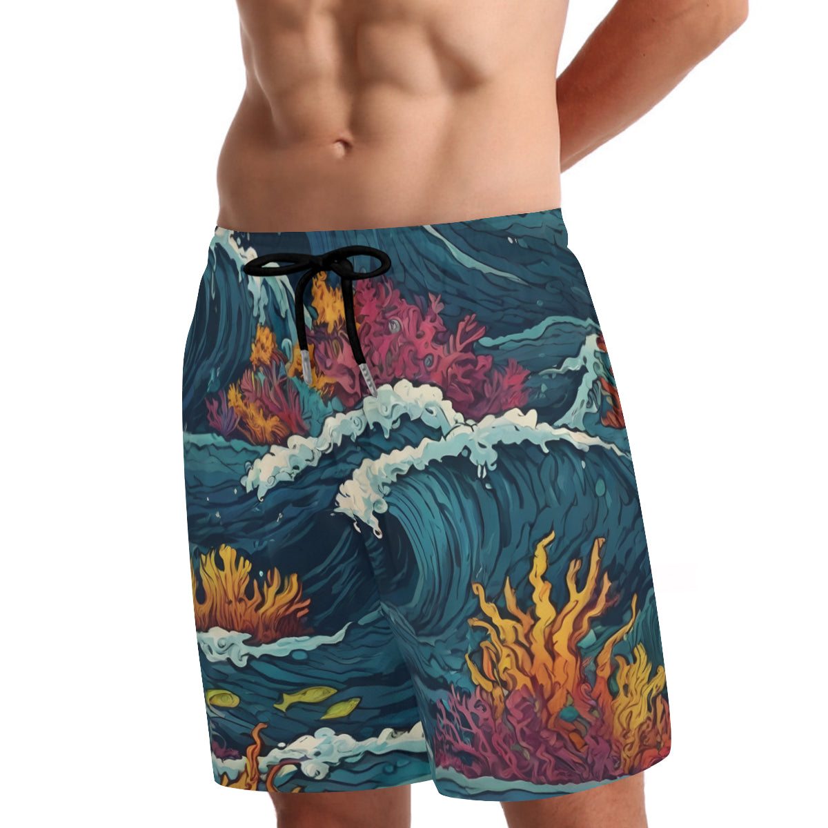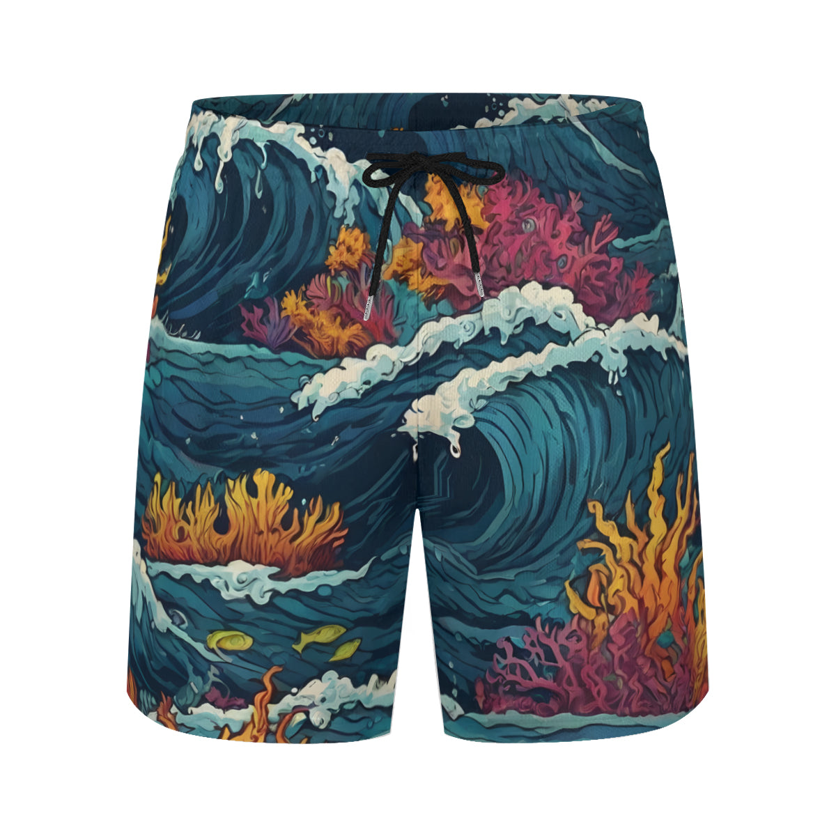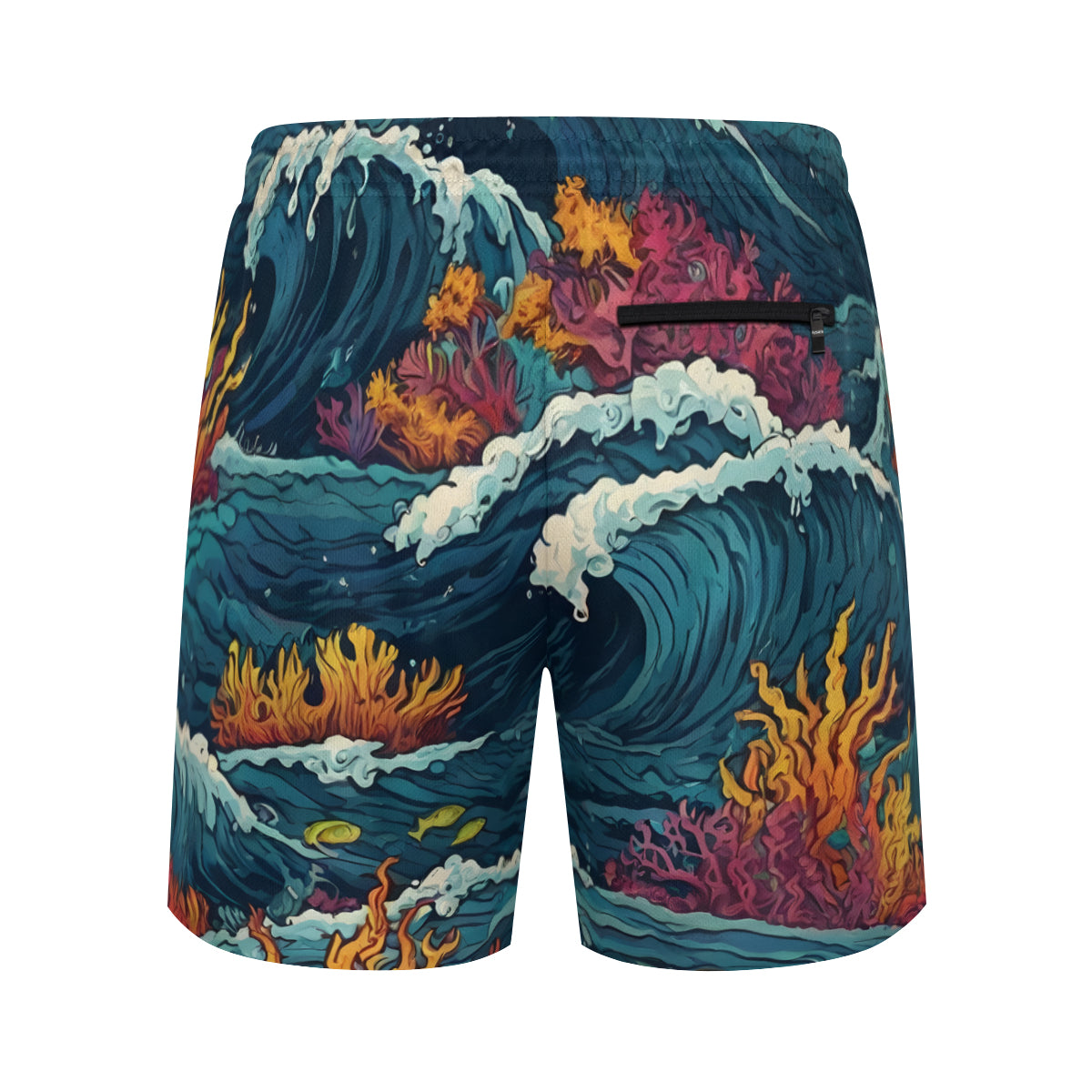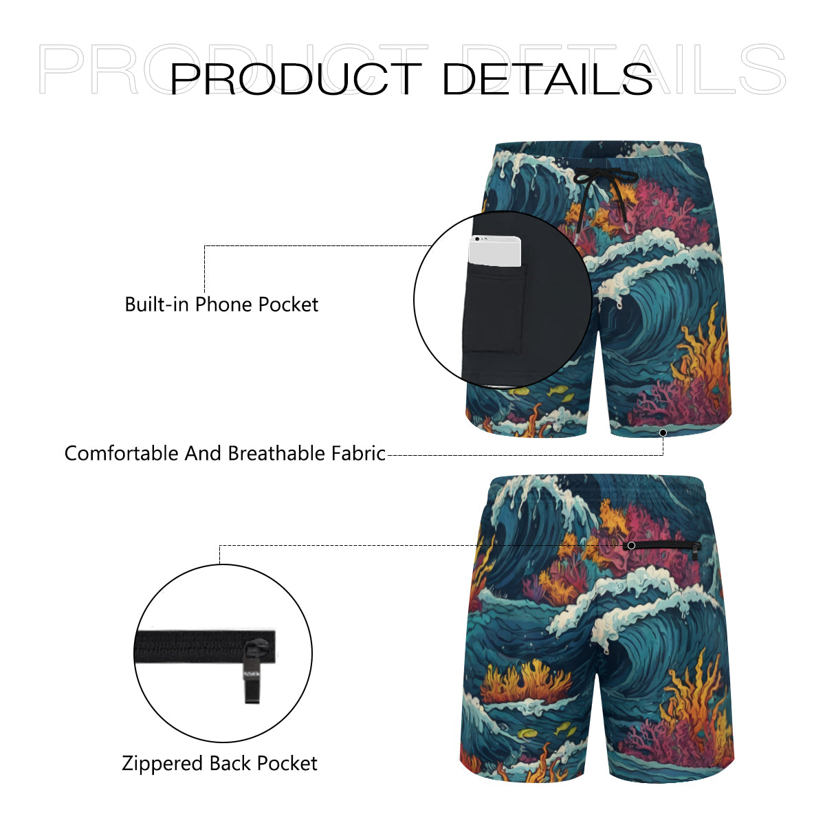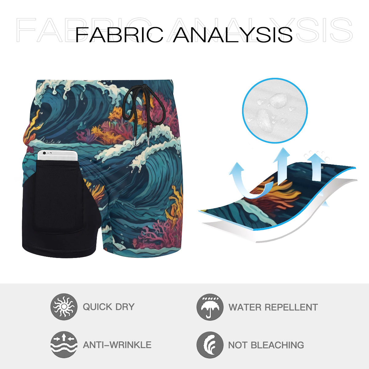 Ocean Waves Men's Casual Shorts Double-Layer Sports Beach Shorts (Multi-Faceted Design) | Polyester