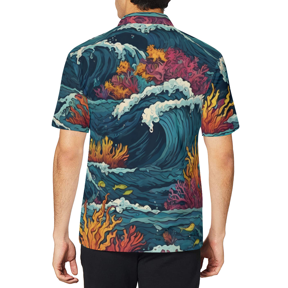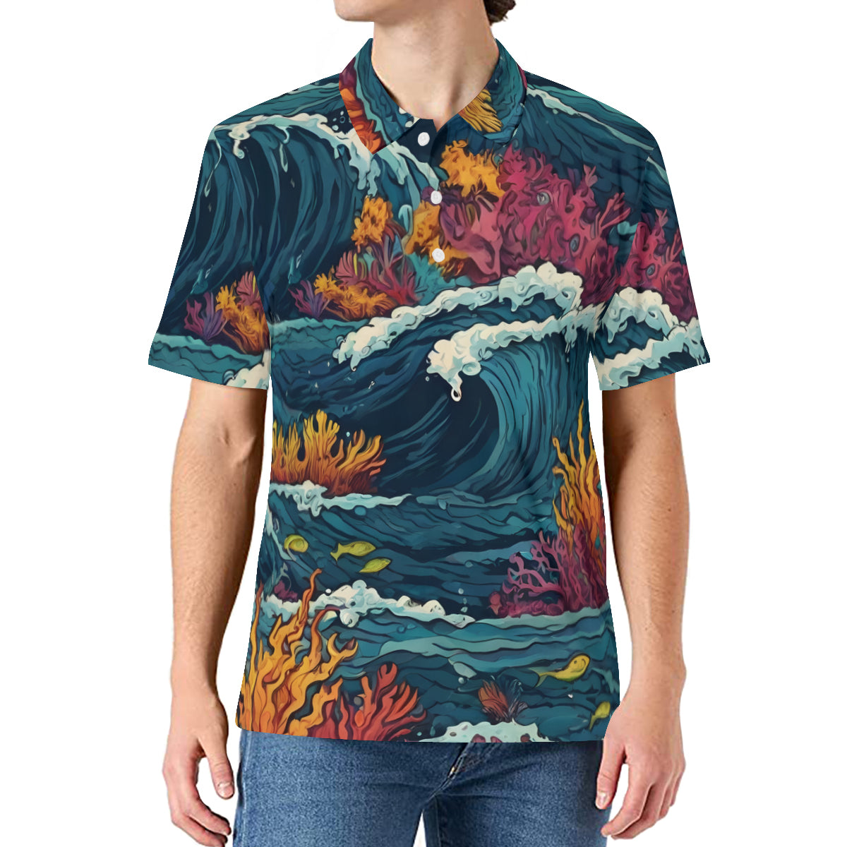 Ocean Waves Men's Premium European Size POLO Shirt | 95% Polyester+5% Spandex
