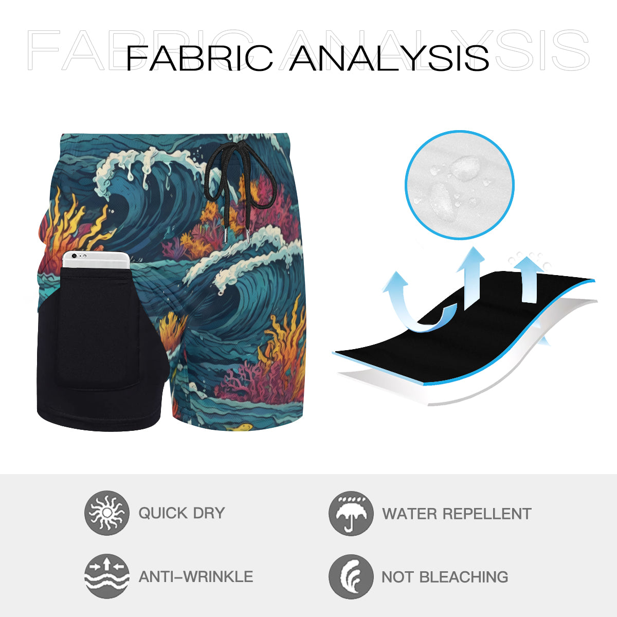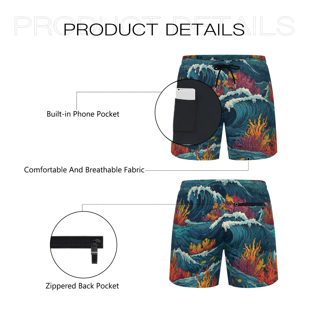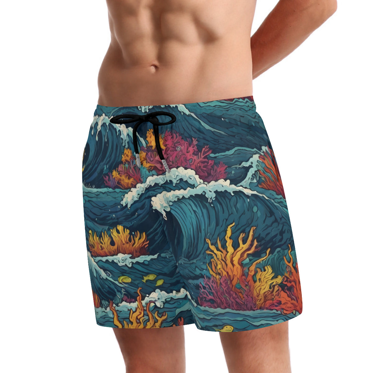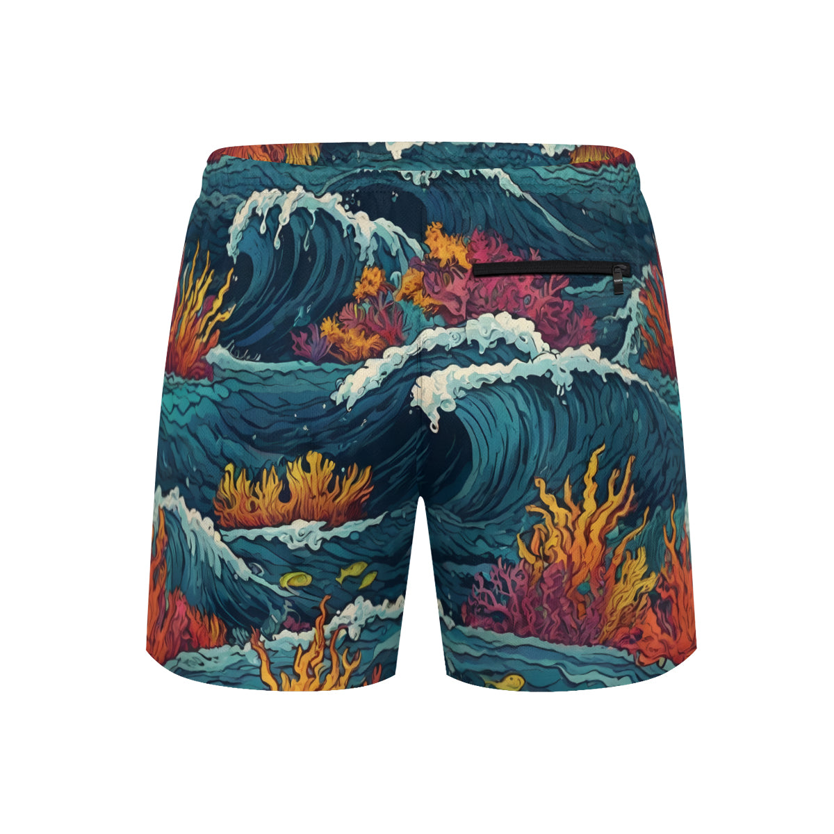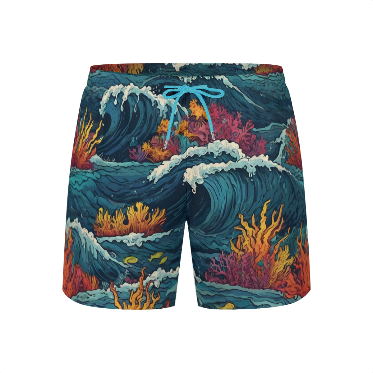Ocean Waves Short Sports Beach Shorts (Multifaceted Design) | Polyester
