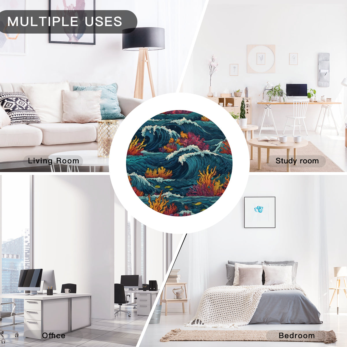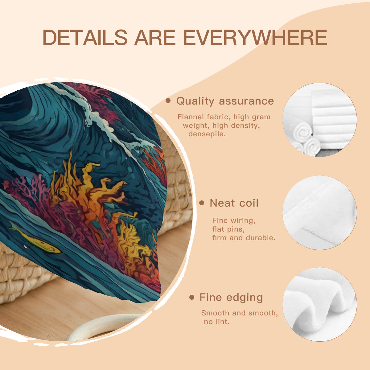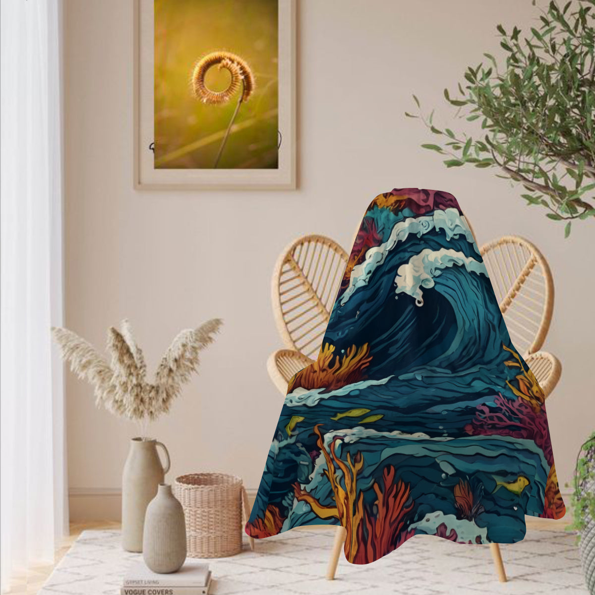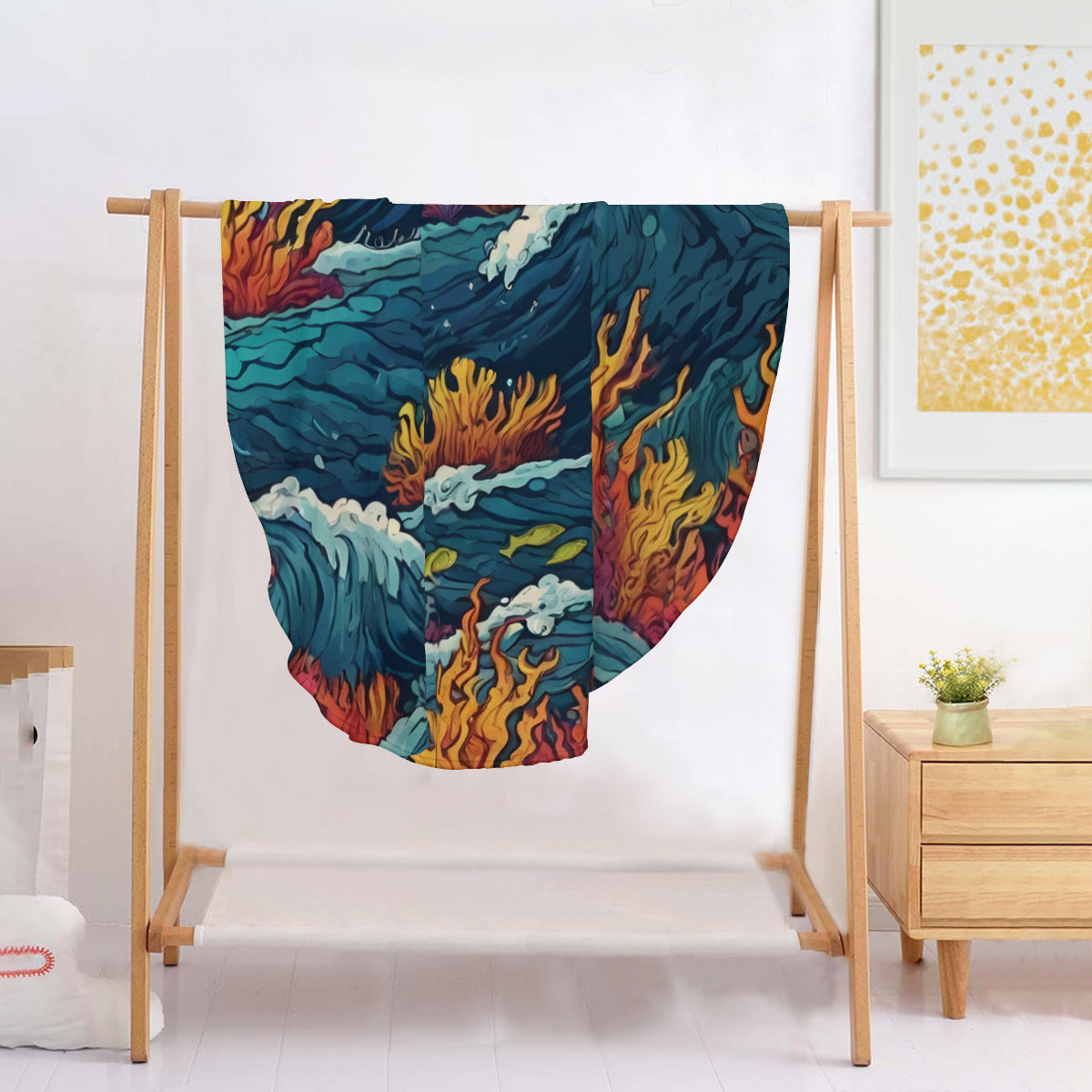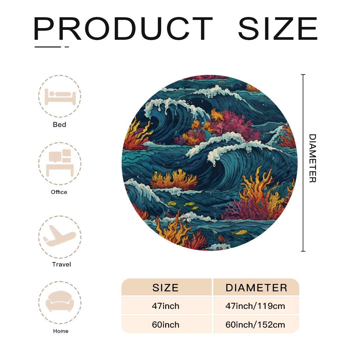 Ocean Waves Single-Sided Printed Round Blanket | 280GSM Flannel