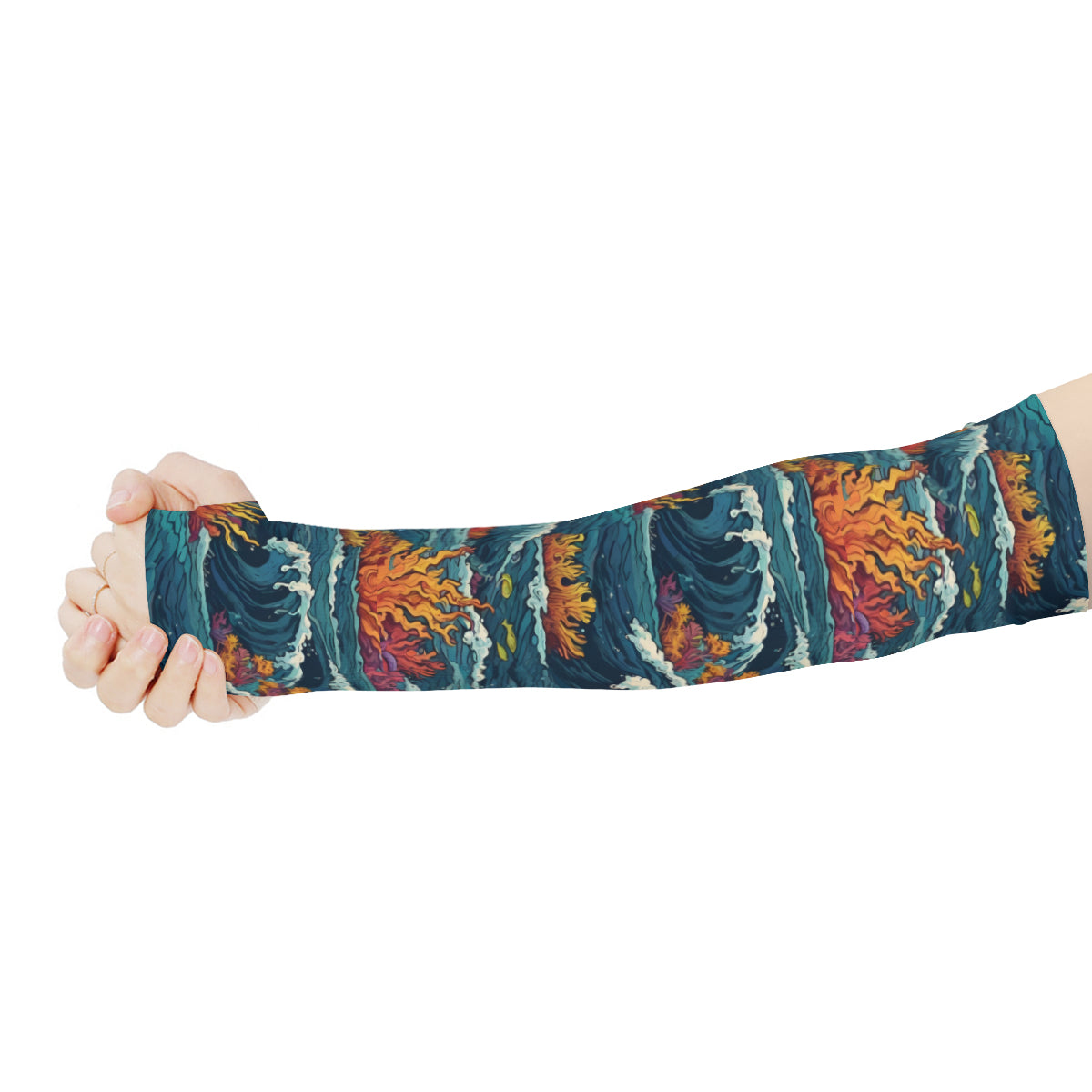 Ocean Waves UV-Proof Cool Arm Cover Sunscreen Gloves | Polyester