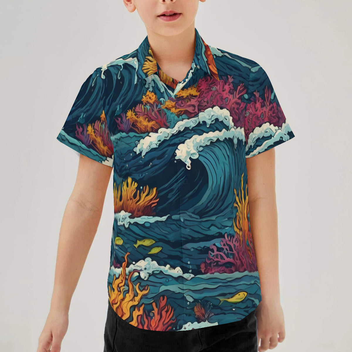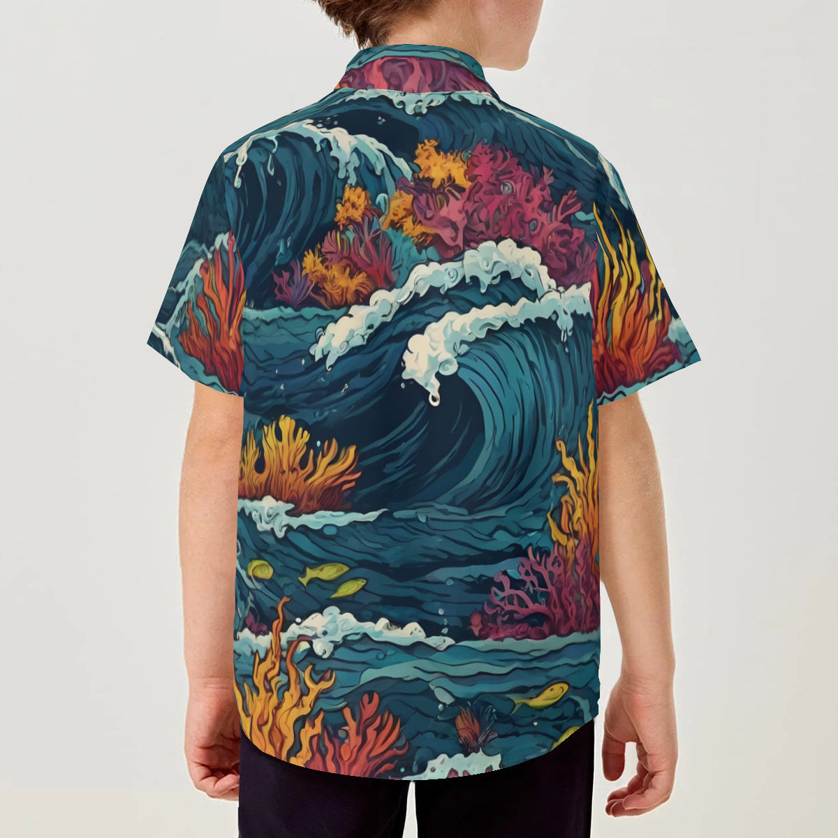 Ocean Waves All-Over Print Youth Shirts|Polyester