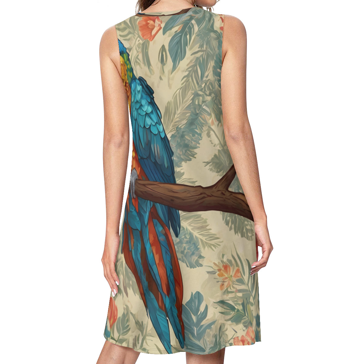 Parrot Design All-Over Print Women's Casual Dress | Polyester