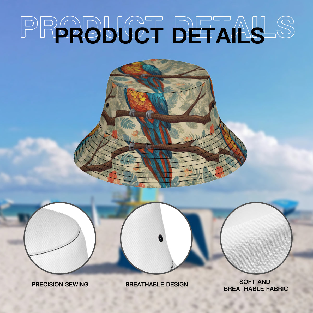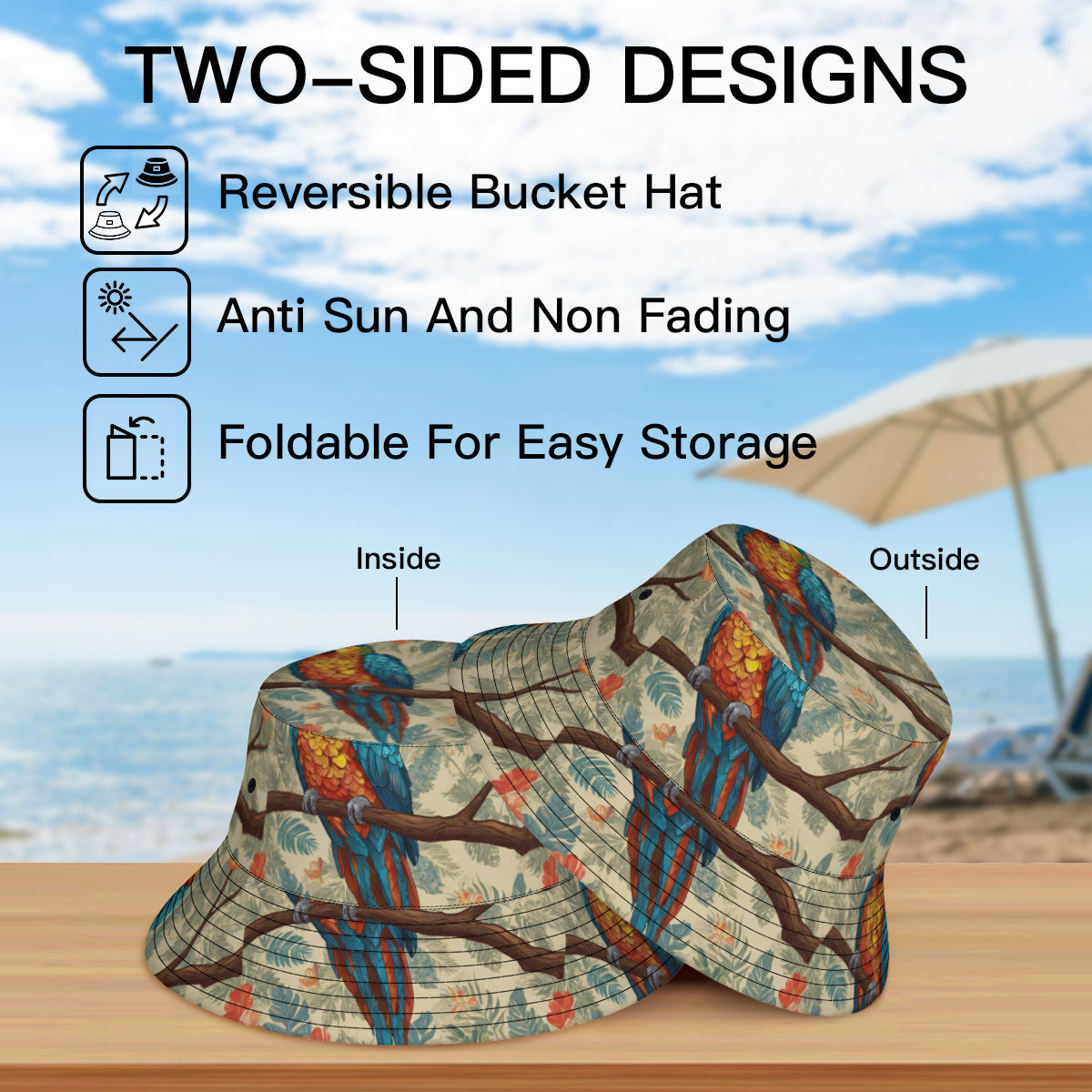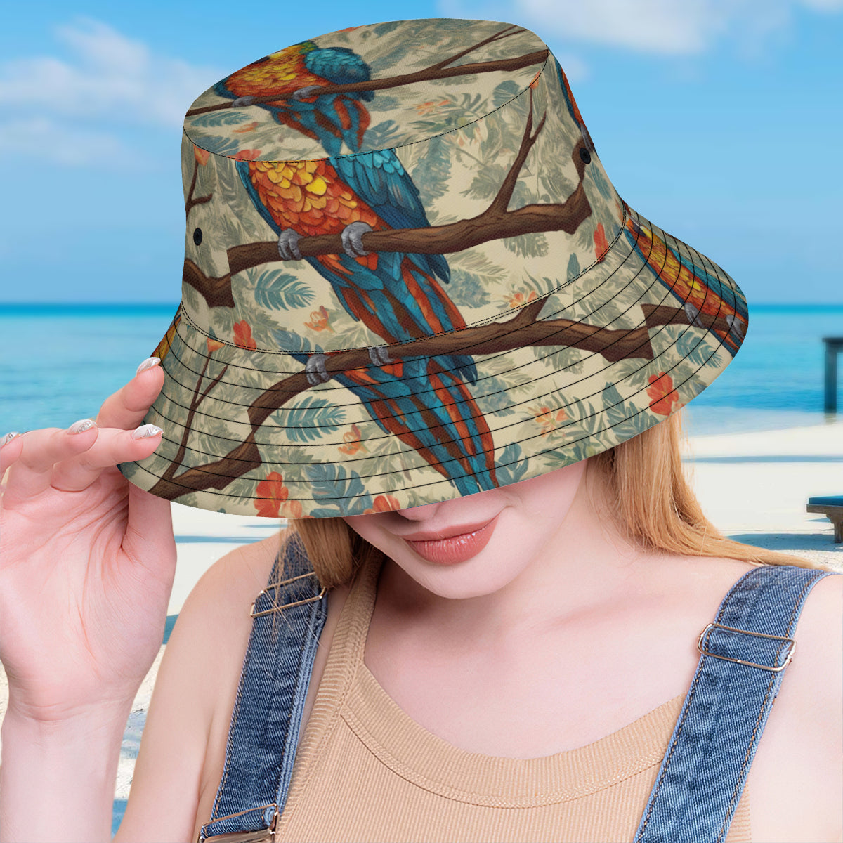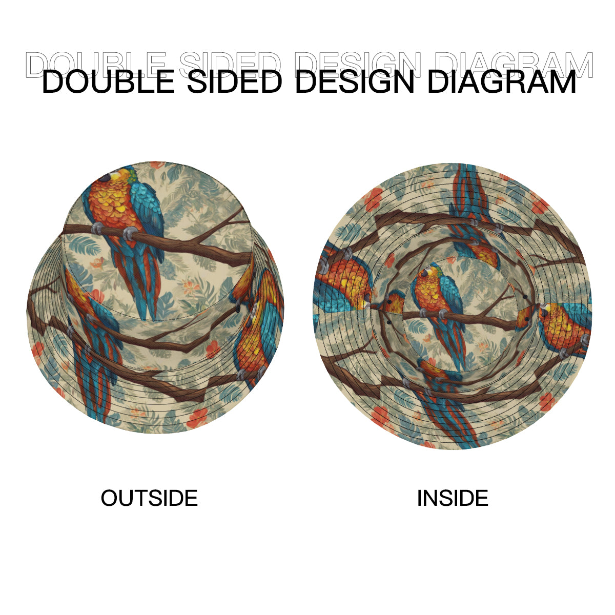 Parrot Design Double-Sided All-Over Print Fisherman Hat | Polyester