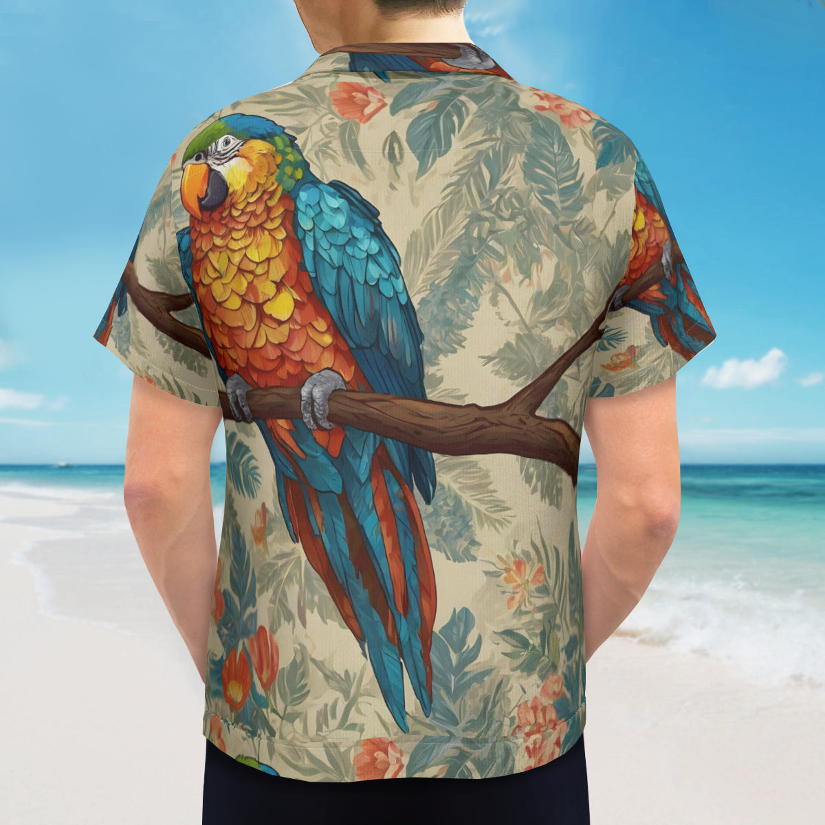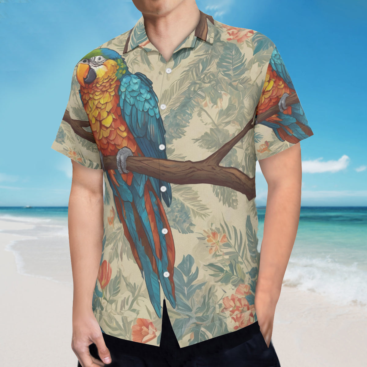 Parrot Design All-Over Print Hawaiian Shirt(No chest pocket) | Polyester
