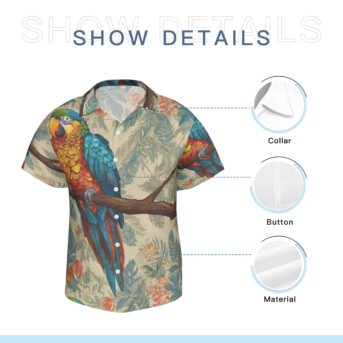 Parrot Design Hawaiian Shirt(No chest pocket) | Polyester