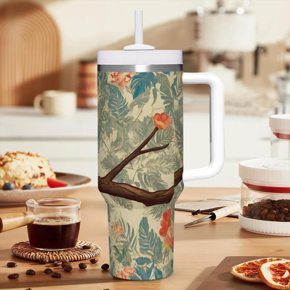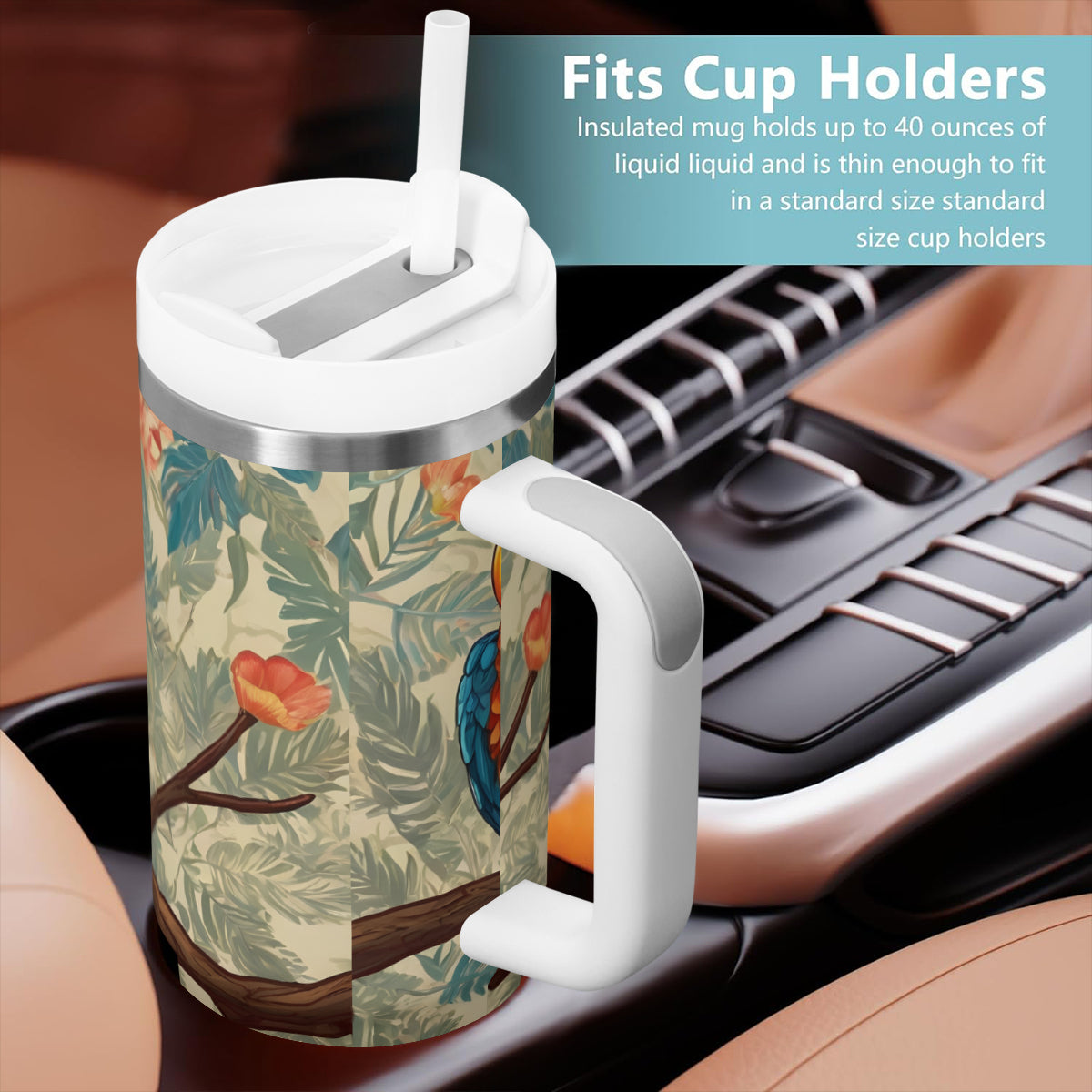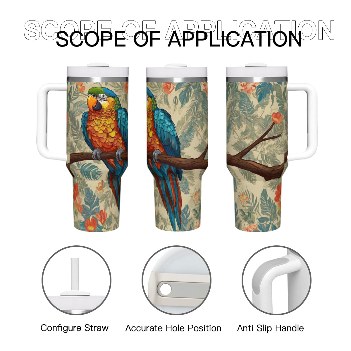 Parrot Design Large Capacity Tumbler with Handle(1100ml/40oz) | Stainless Steel 304