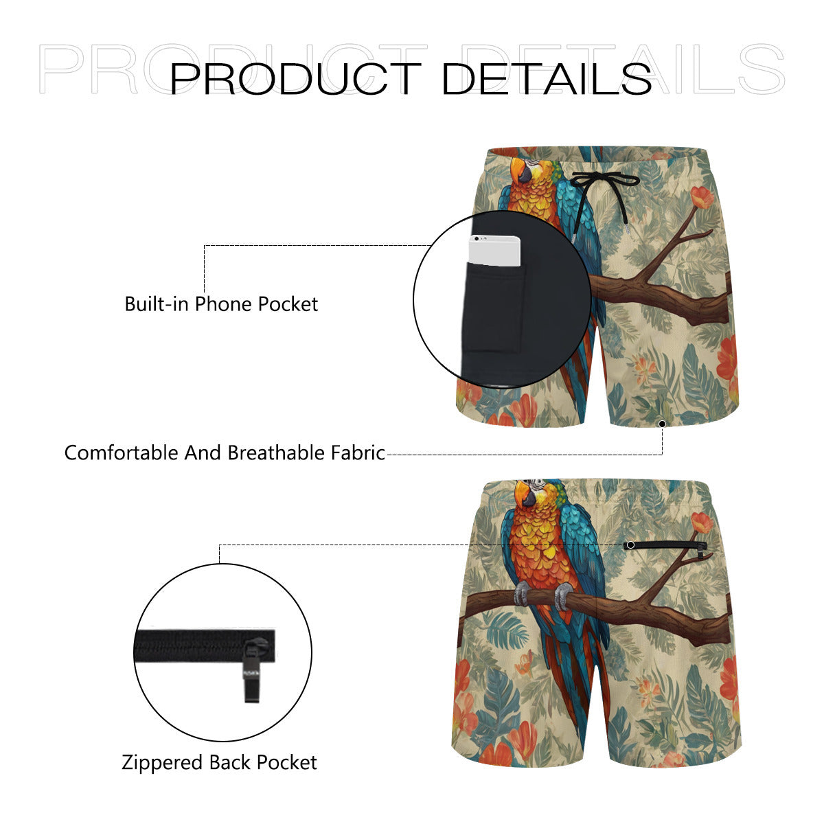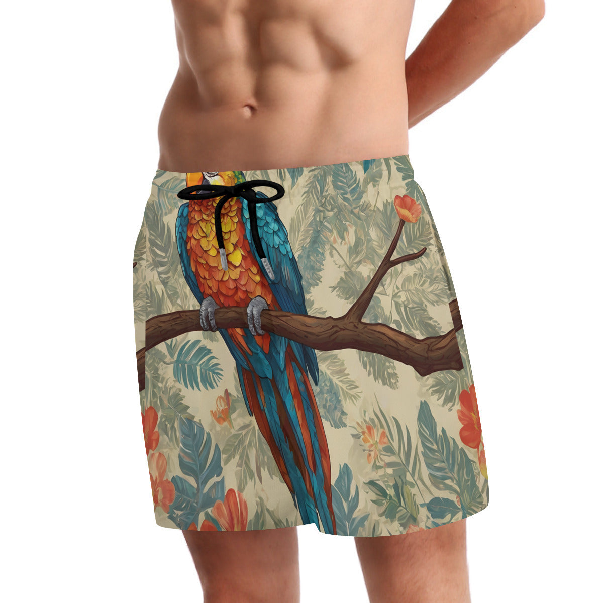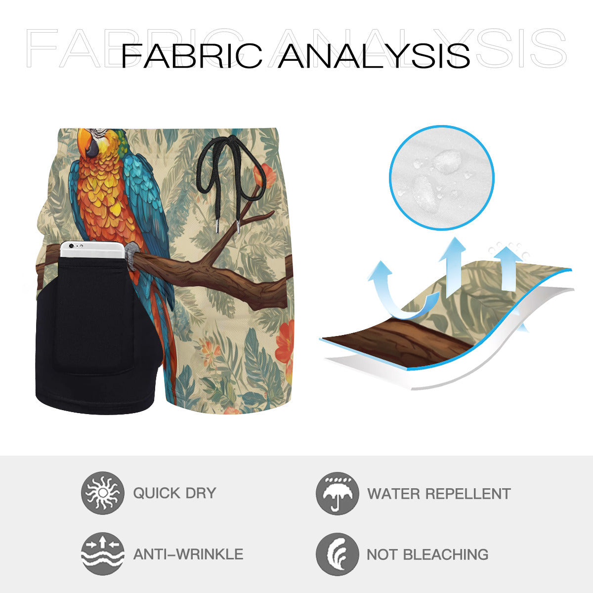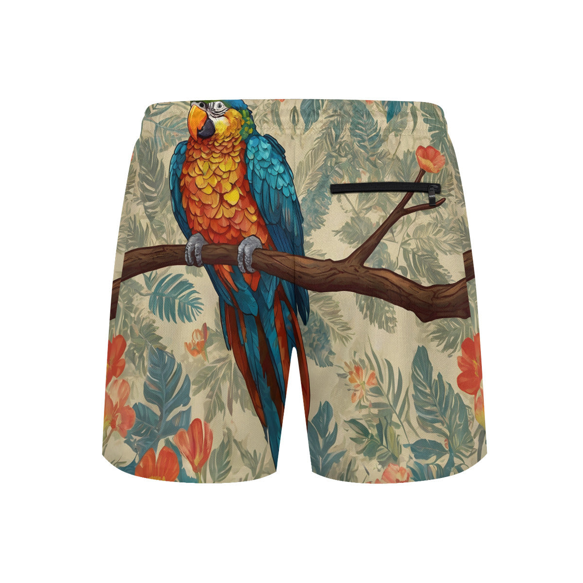 Parrot Design Men's Casual Shorts Double-Layer Sports Beach Pants (Short) | Polyester