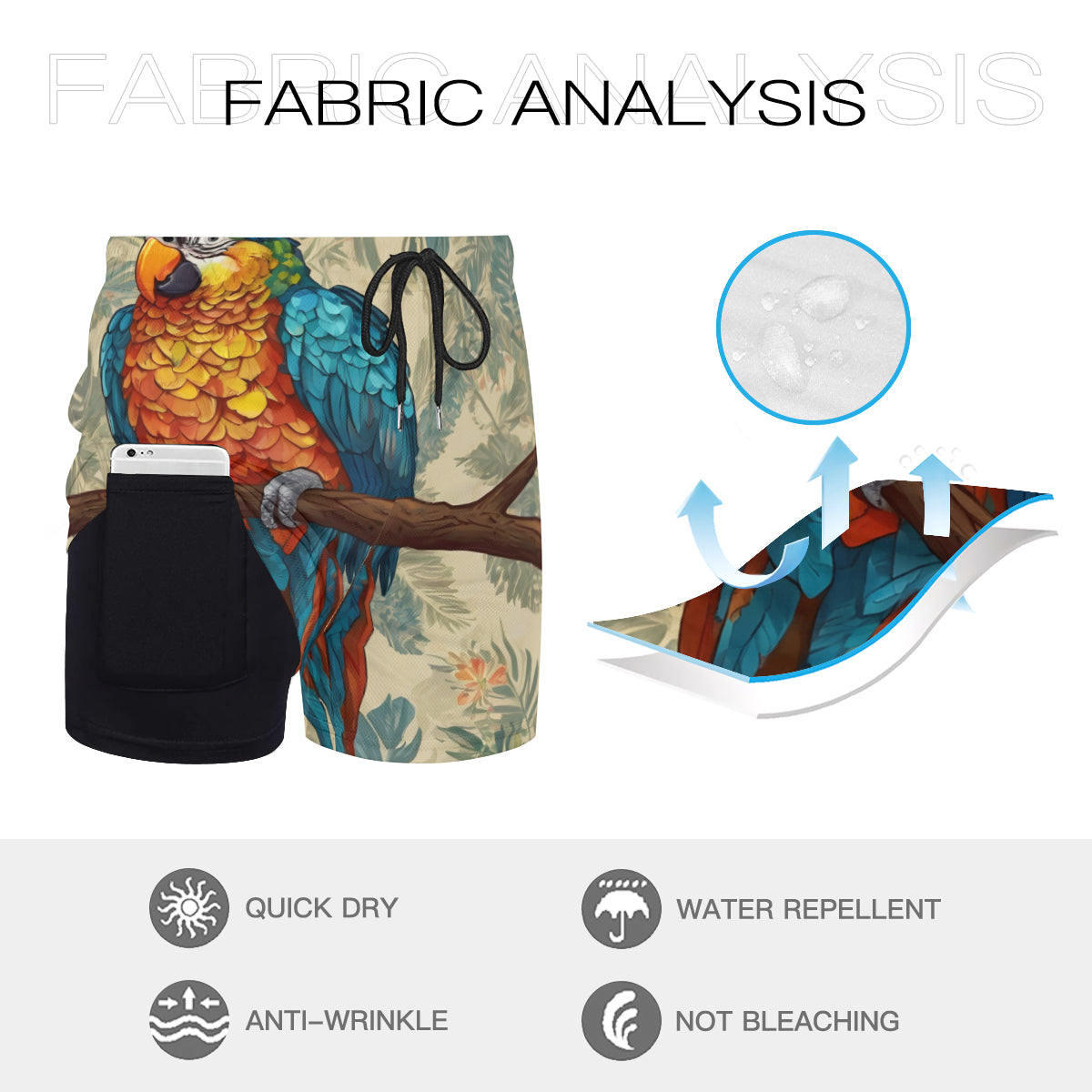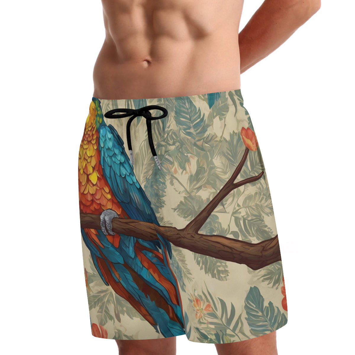 Parrot Design Men's Casual Shorts Double-Layer Sports Beach Shorts | Polyester