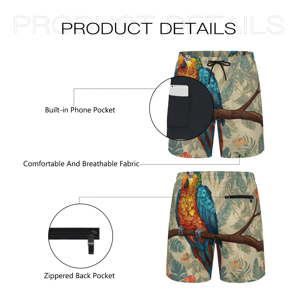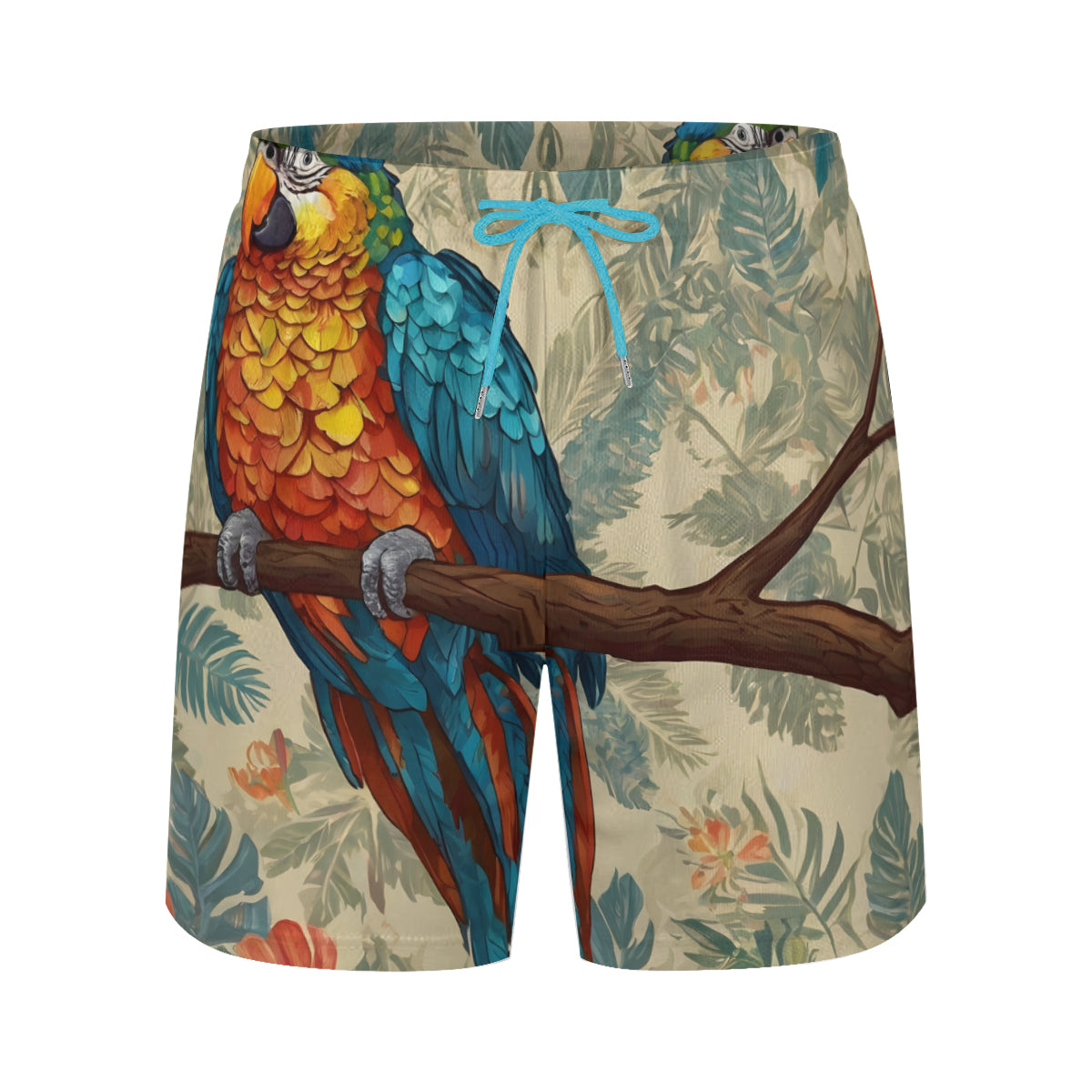 Parrot Design All-Over Print Men's Casual Shorts Double-Layer Sports Beach Shorts | Polyester