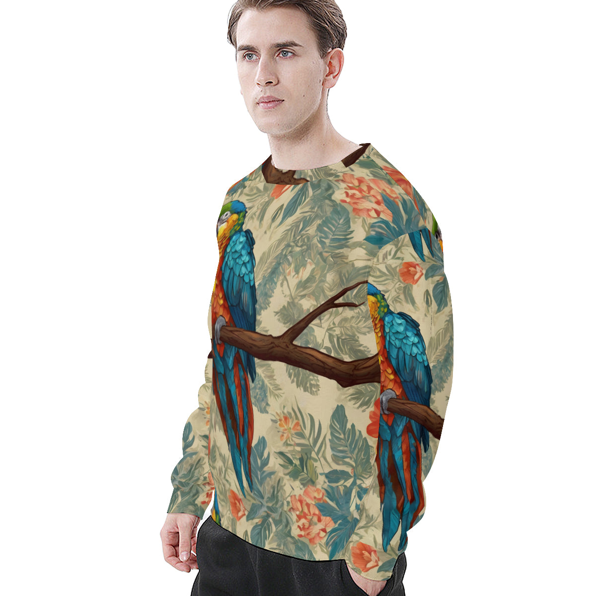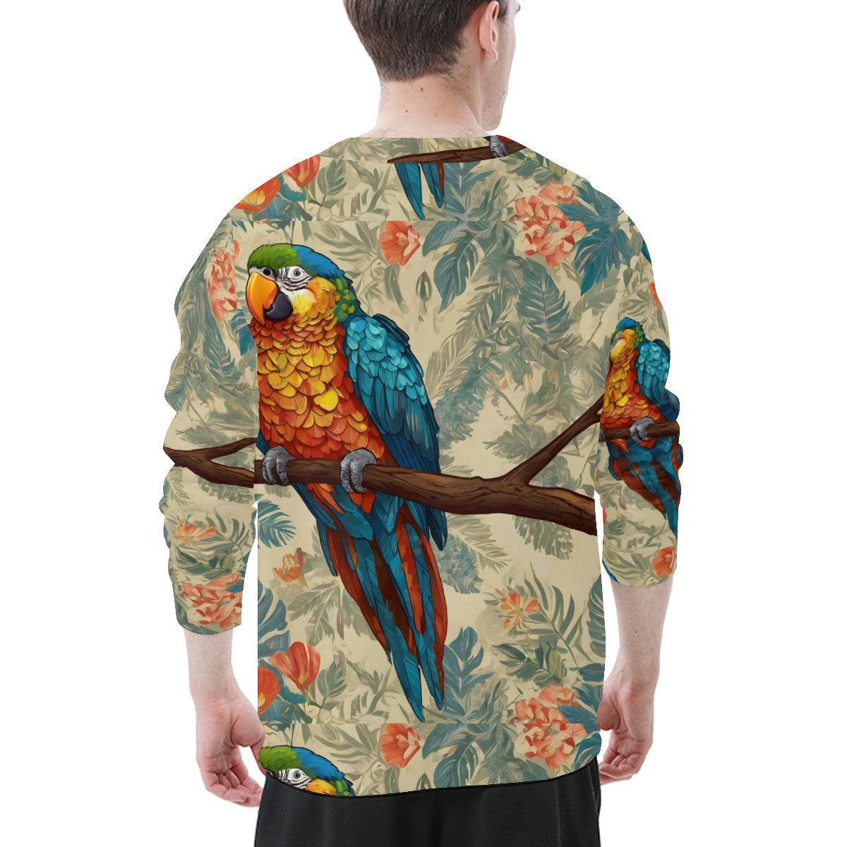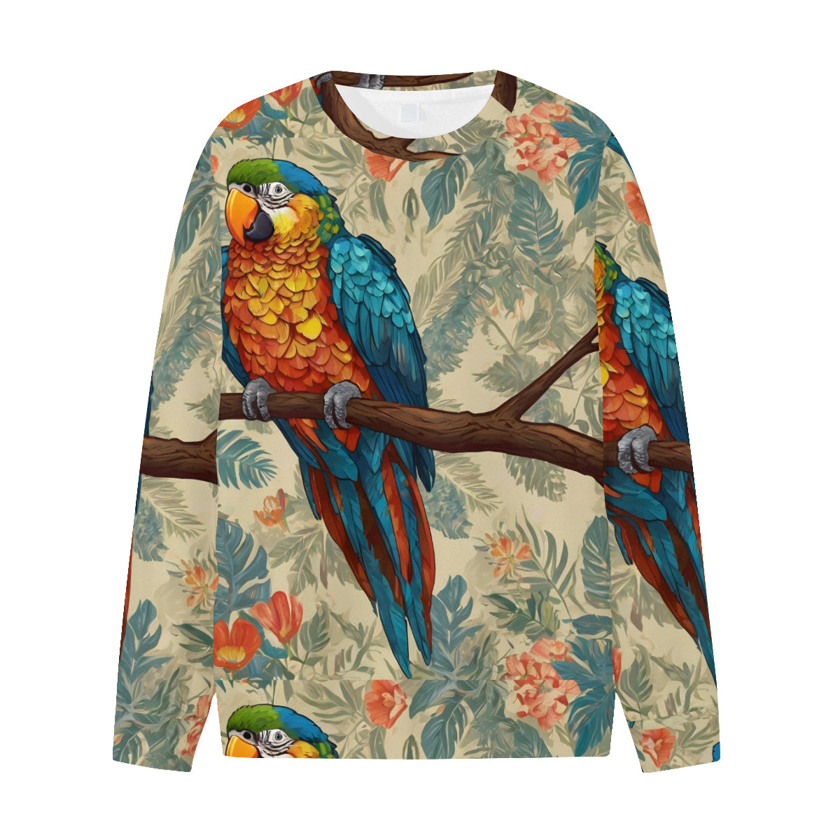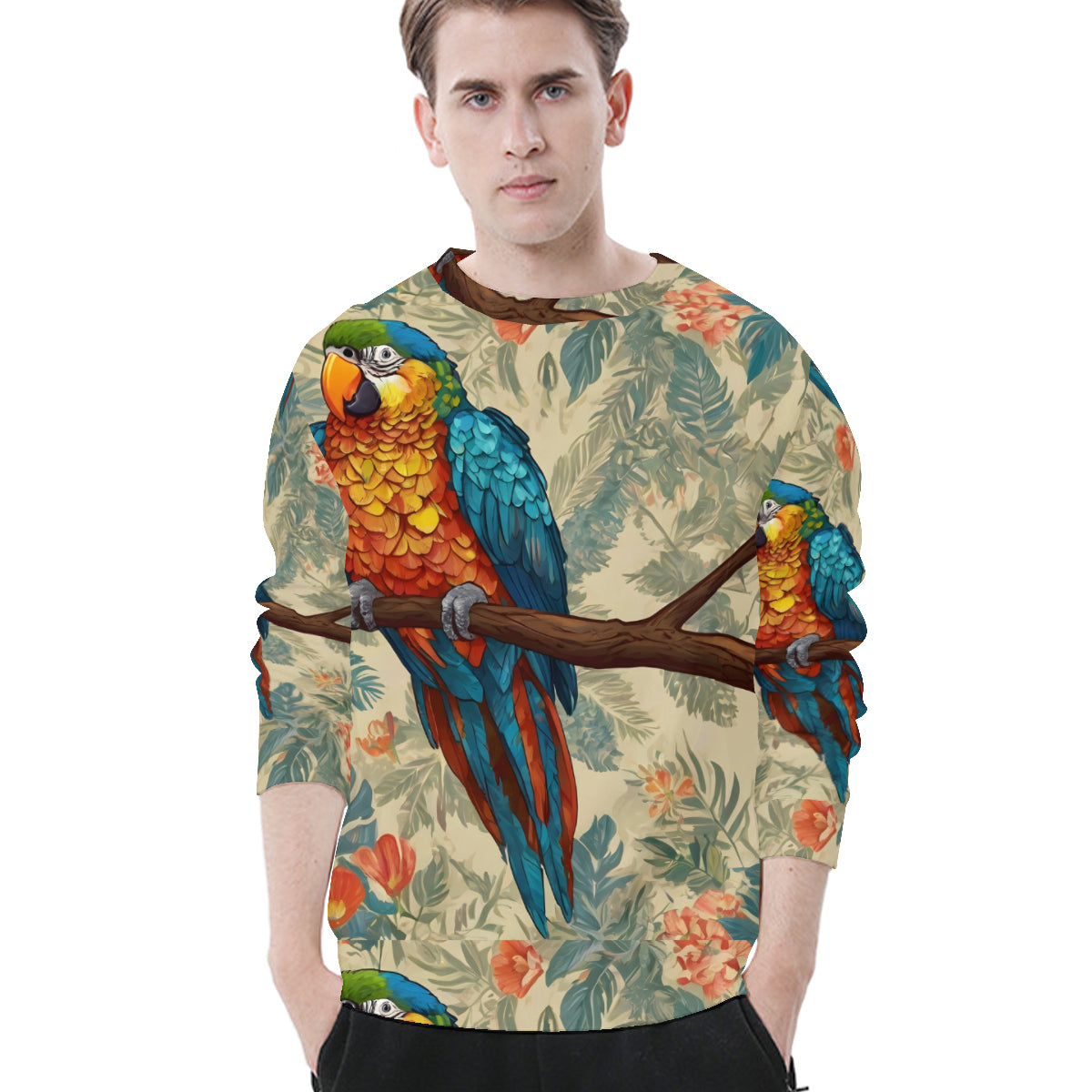 Parrot Design All-Over Print Men's O-Neck EU Size Long-Sleeved T-Shirt | 180GSM Cotton