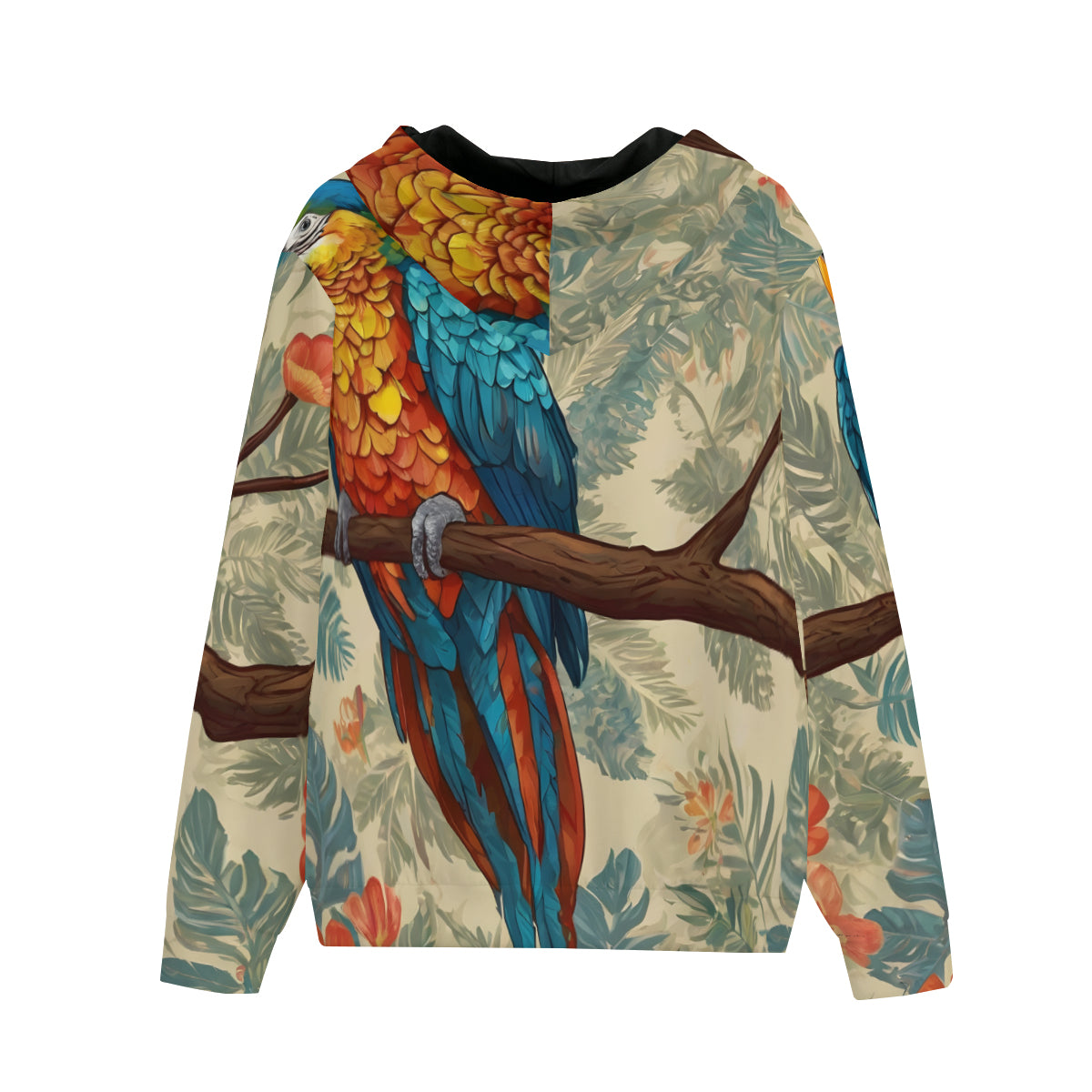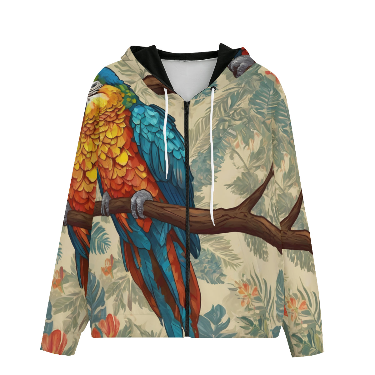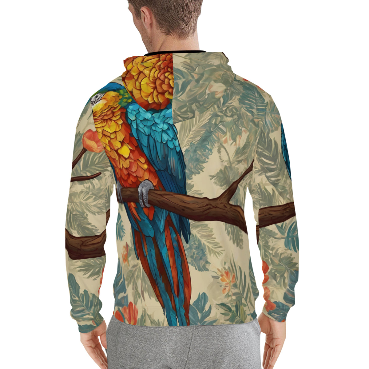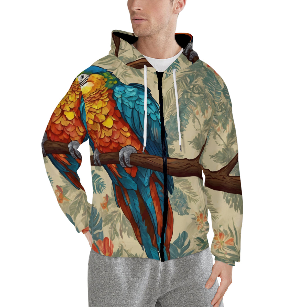 Parrot Design All-Over Print Men's Zip Hoodie with Pockets | Polyester