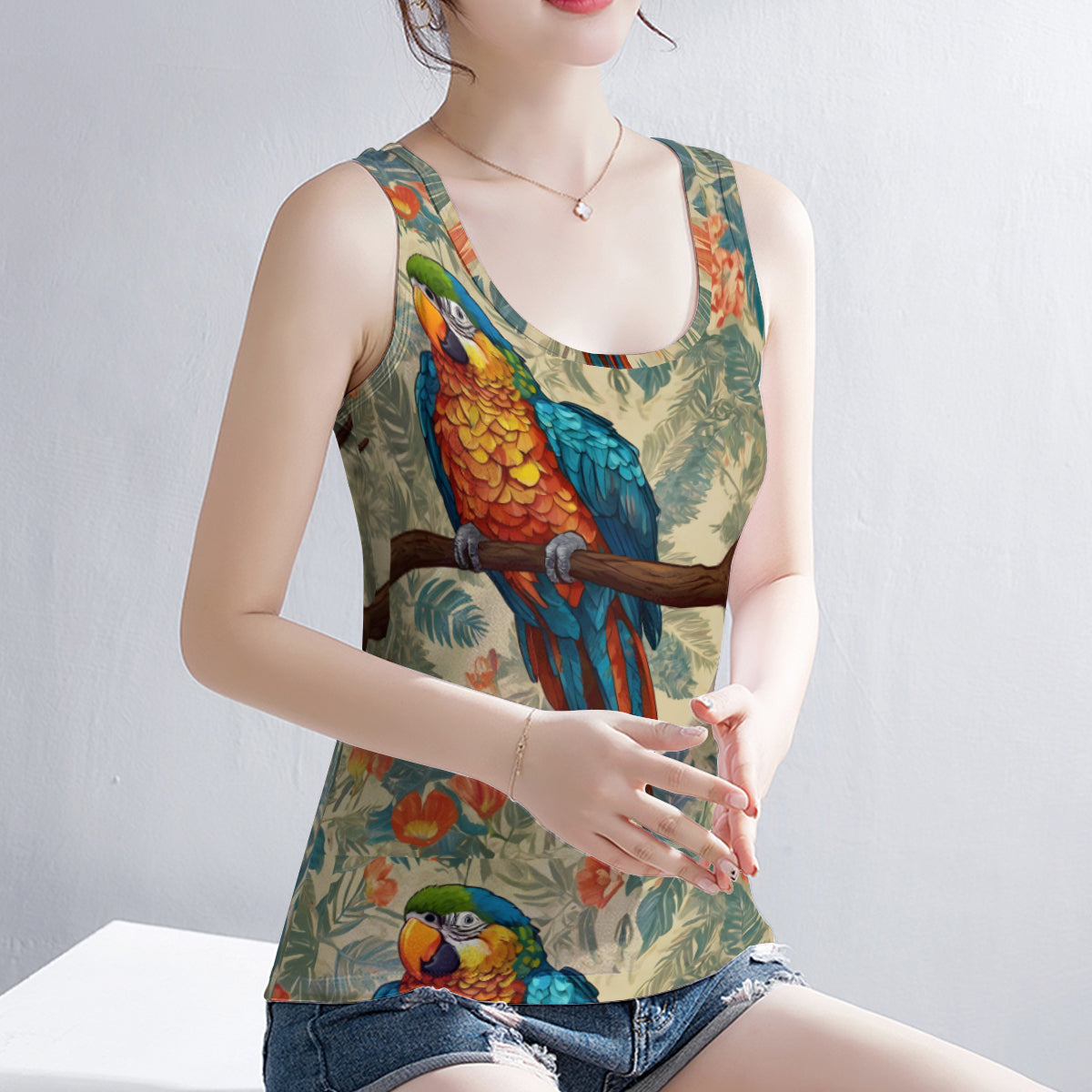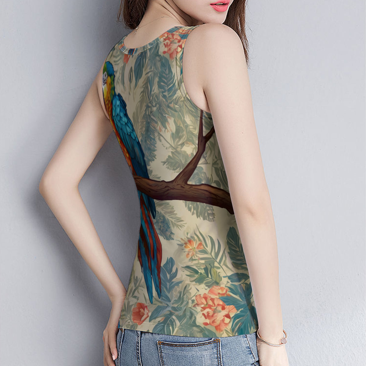 Parrot Design All-Over Print Women's Casual Vest|Polyester