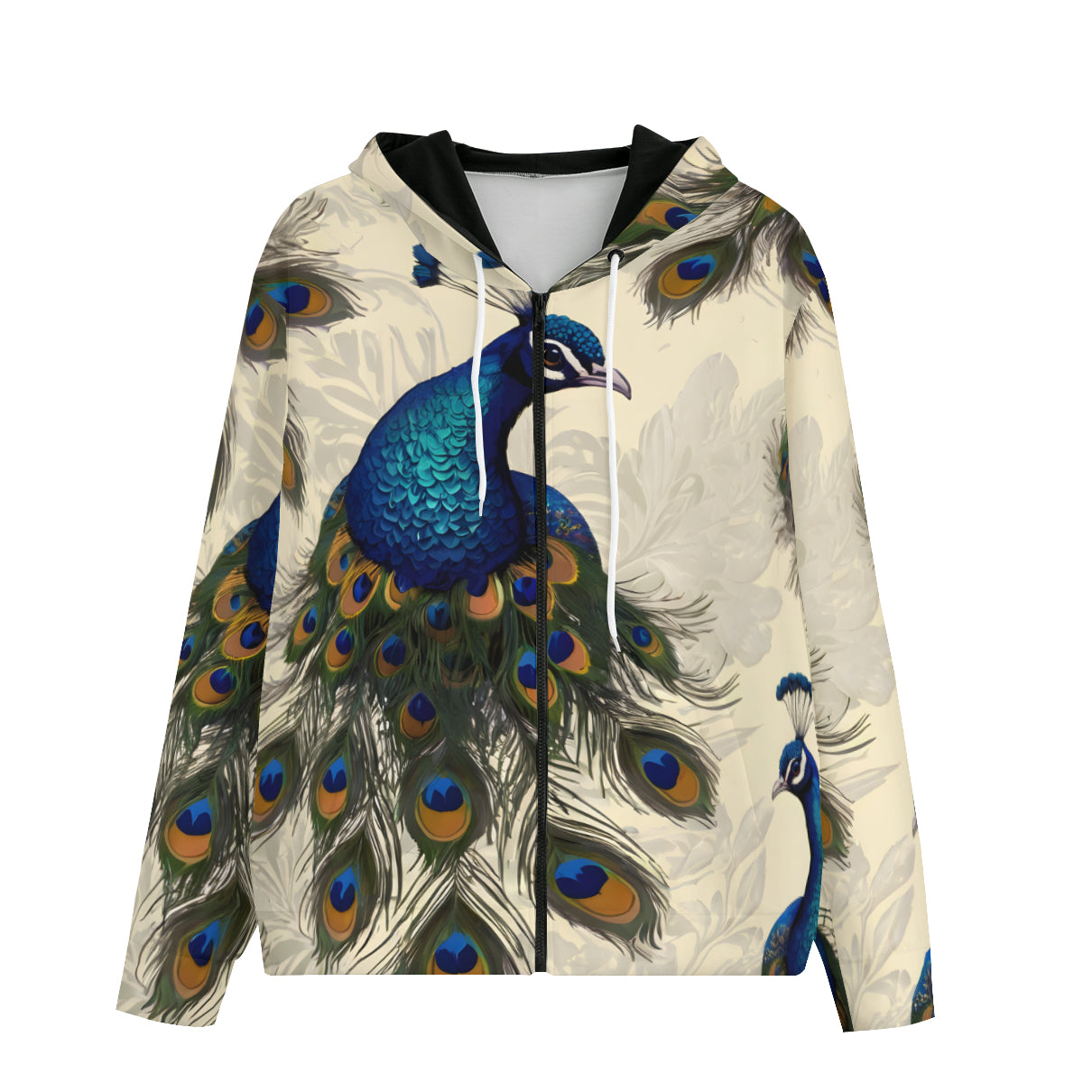 Peacock Design All-Over Print Men's Zip Hoodie with Pockets | Polyester