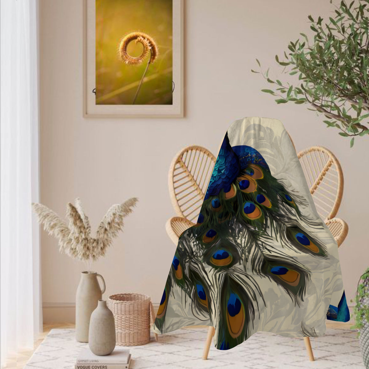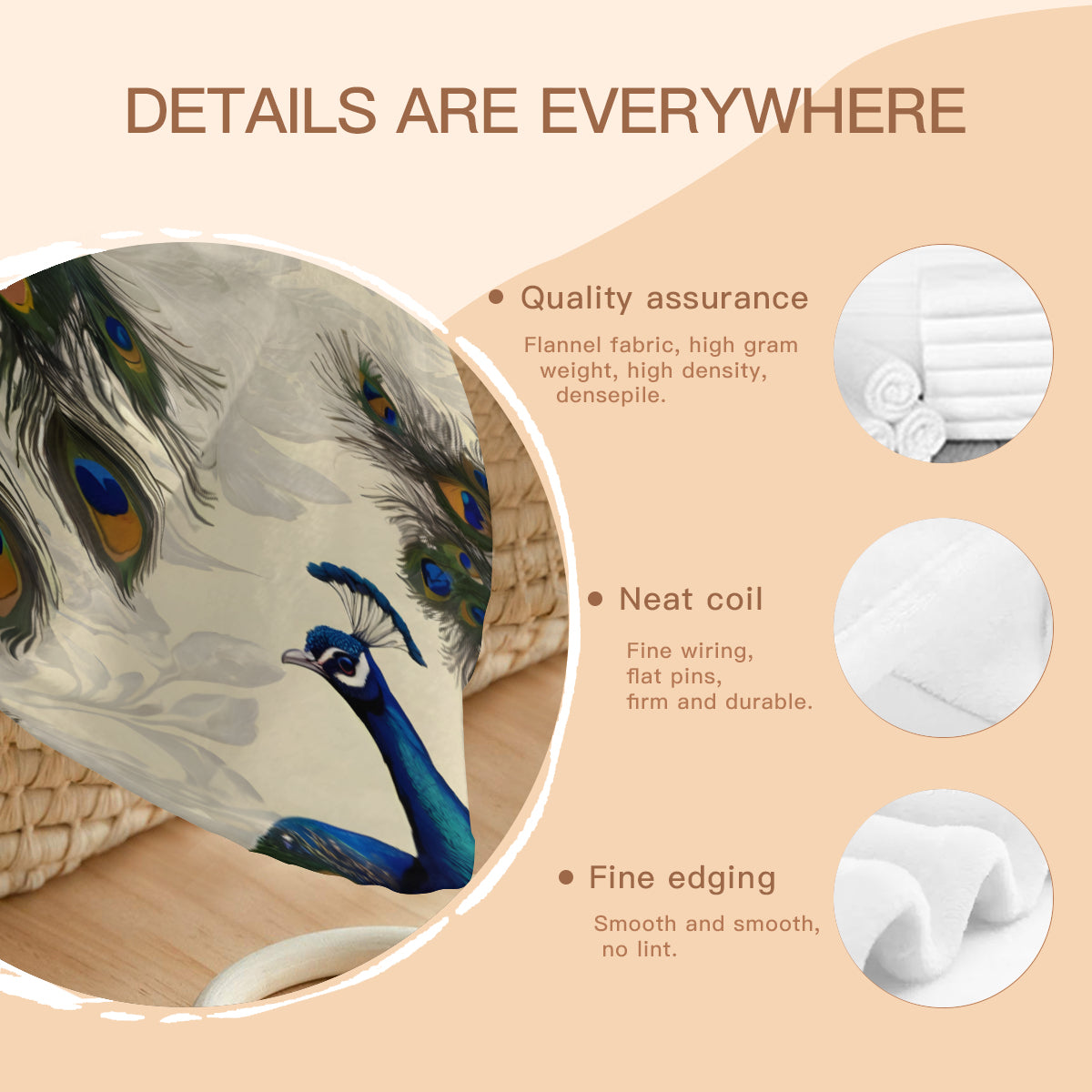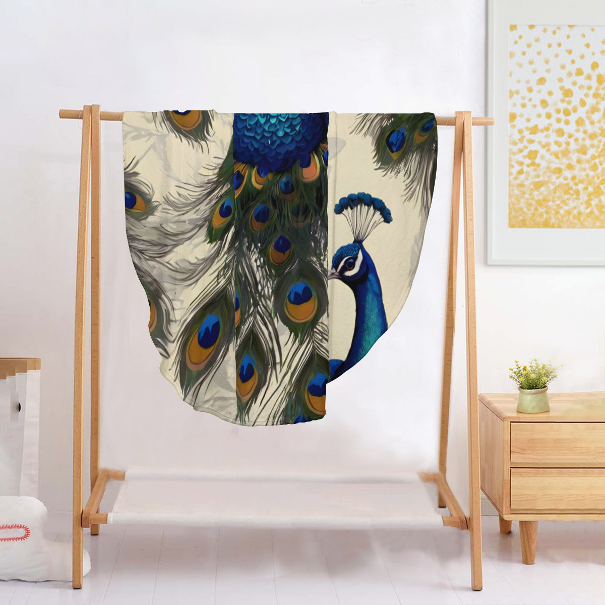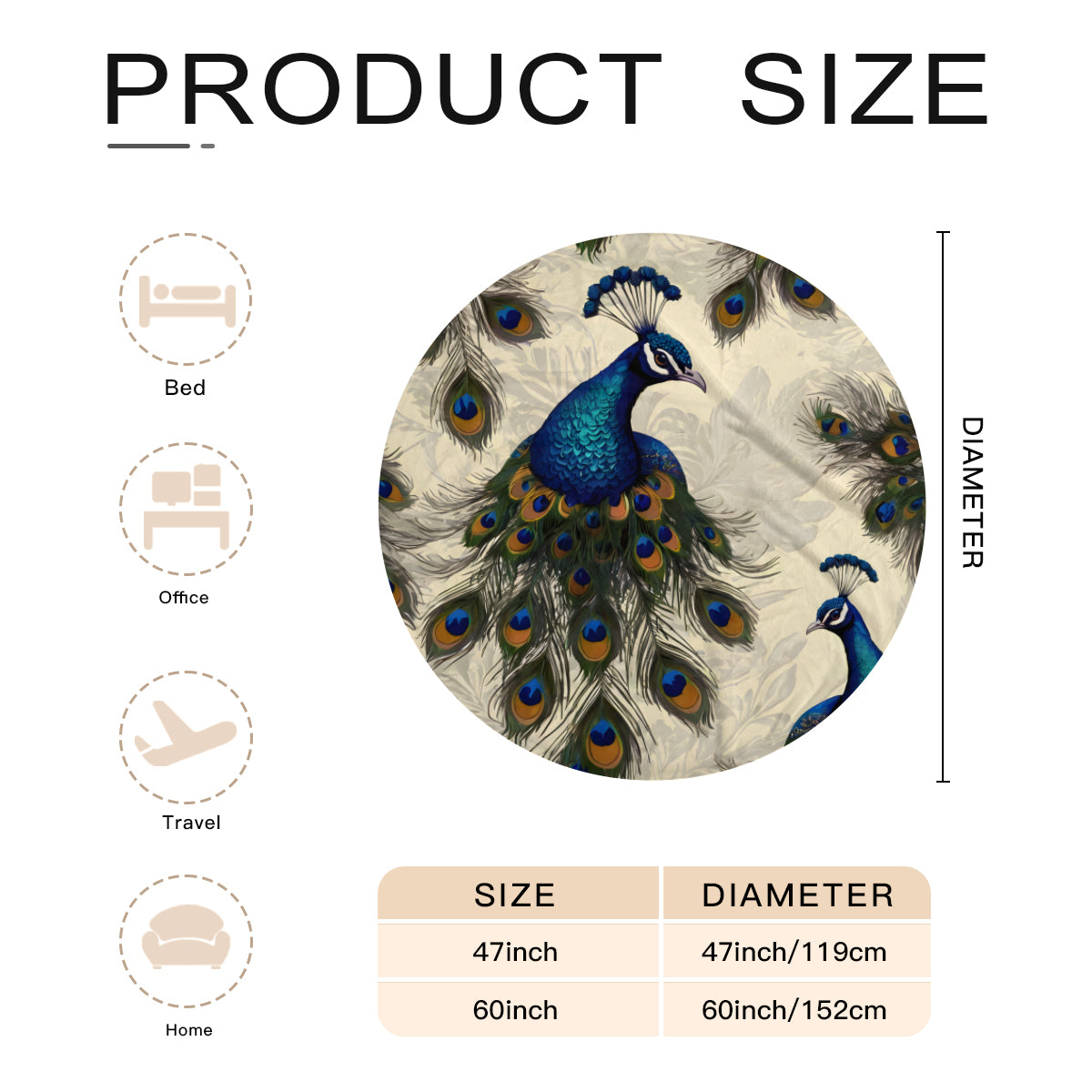 Peacock Design Single-Sided Printed Round Blanket | 280GSM Flannel