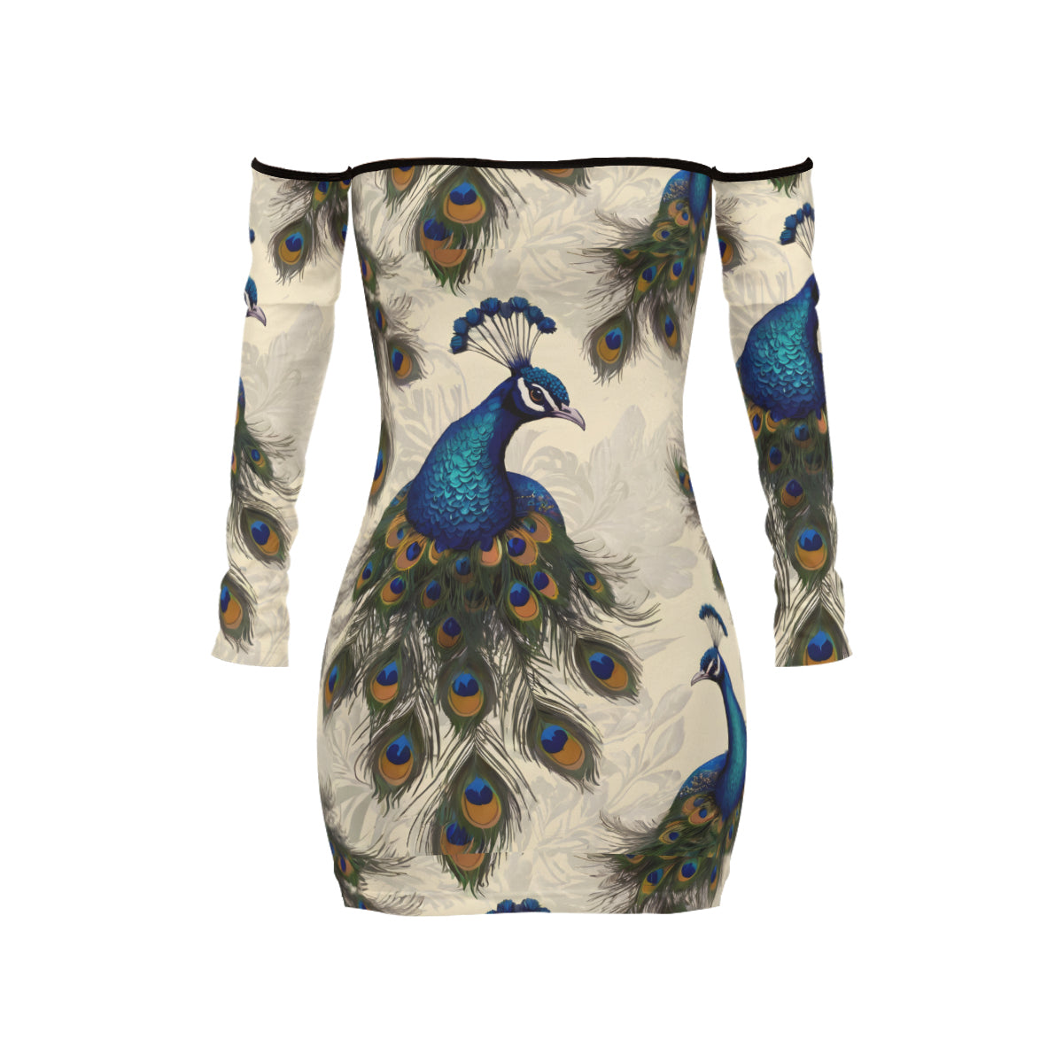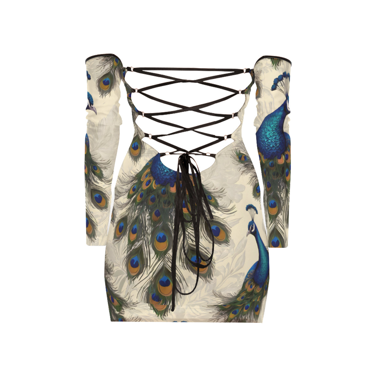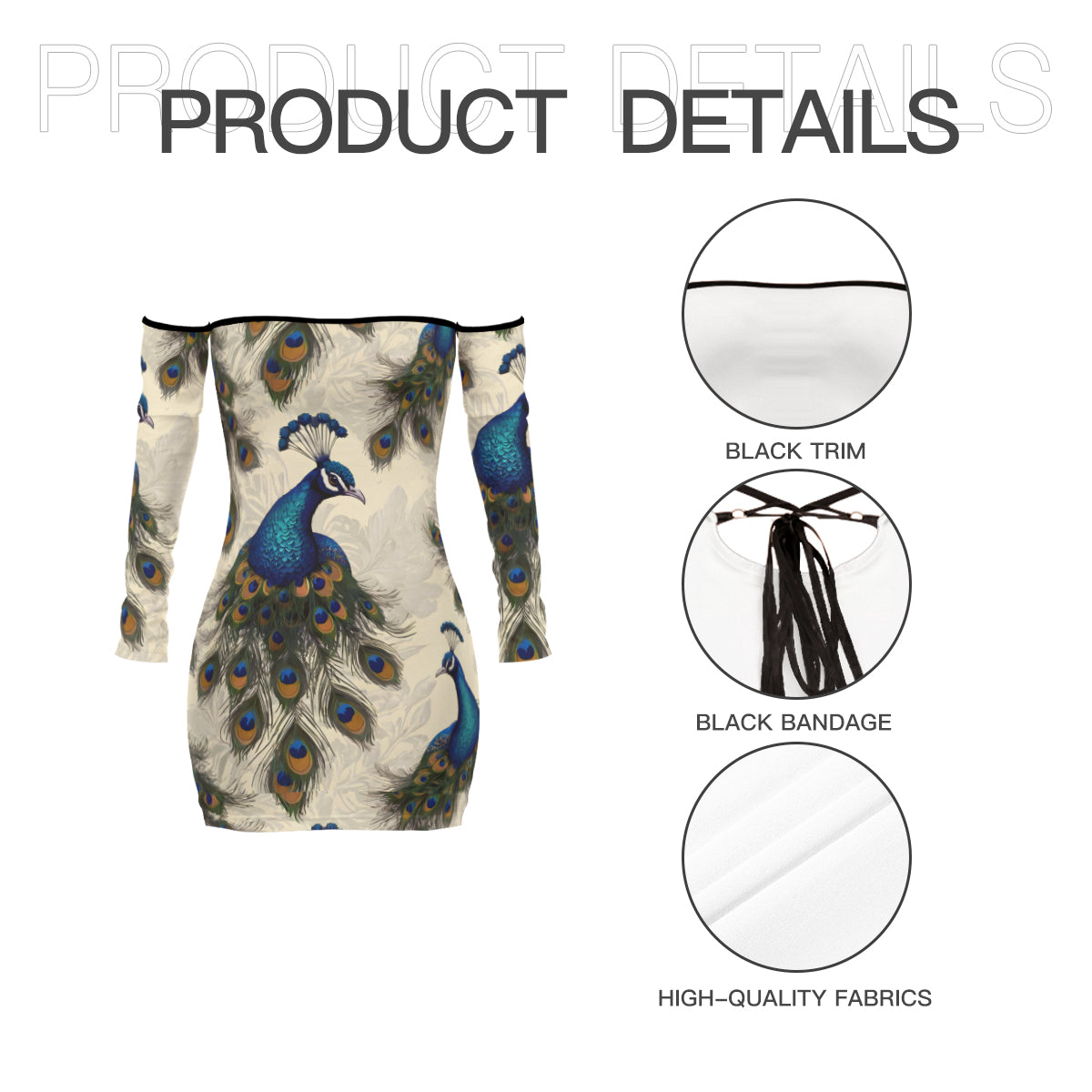 Peacock Design Women's Off-shoulder Back Lace-up Dress | Polyester