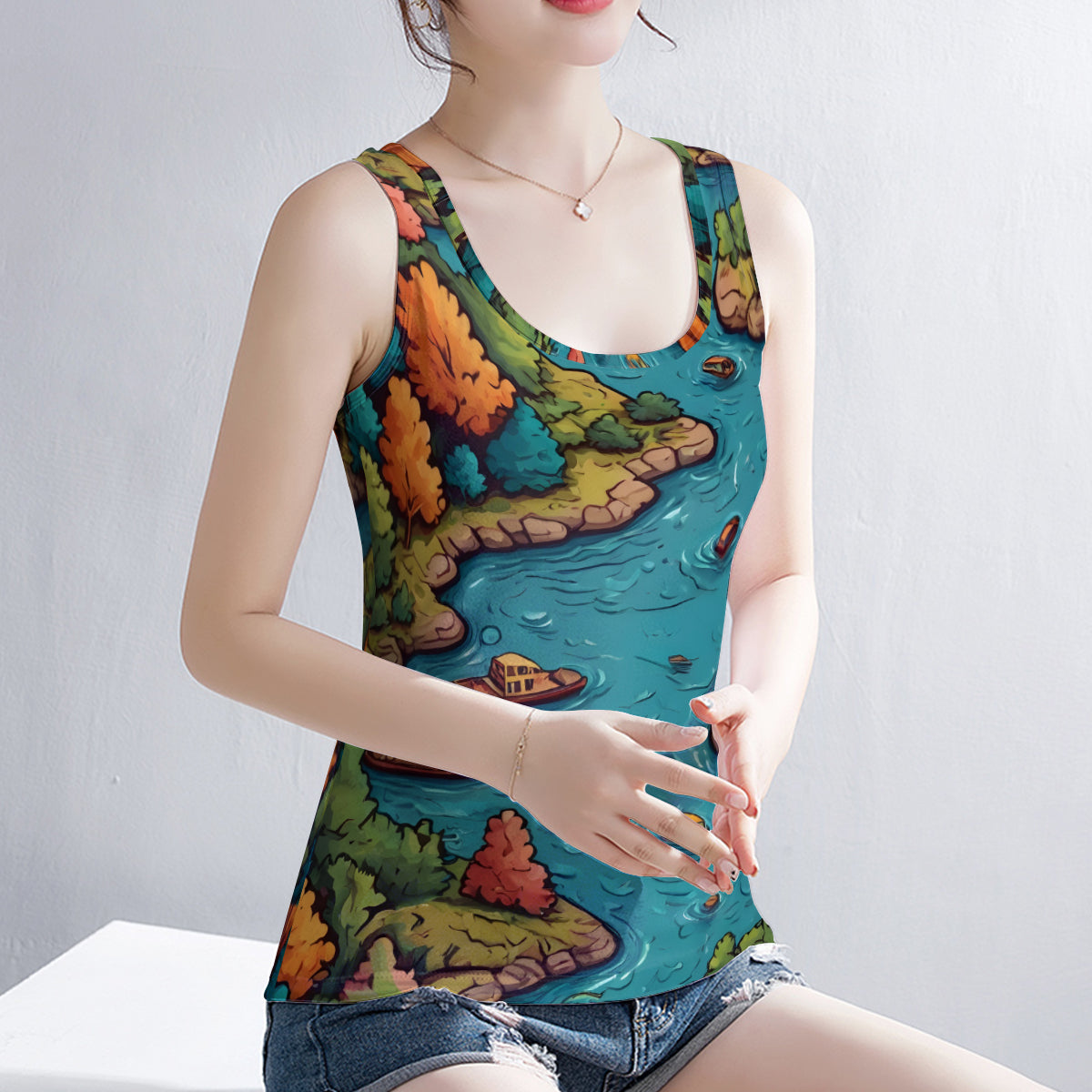 River Front Design All-Over Print Women's Casual Vest|Polyester