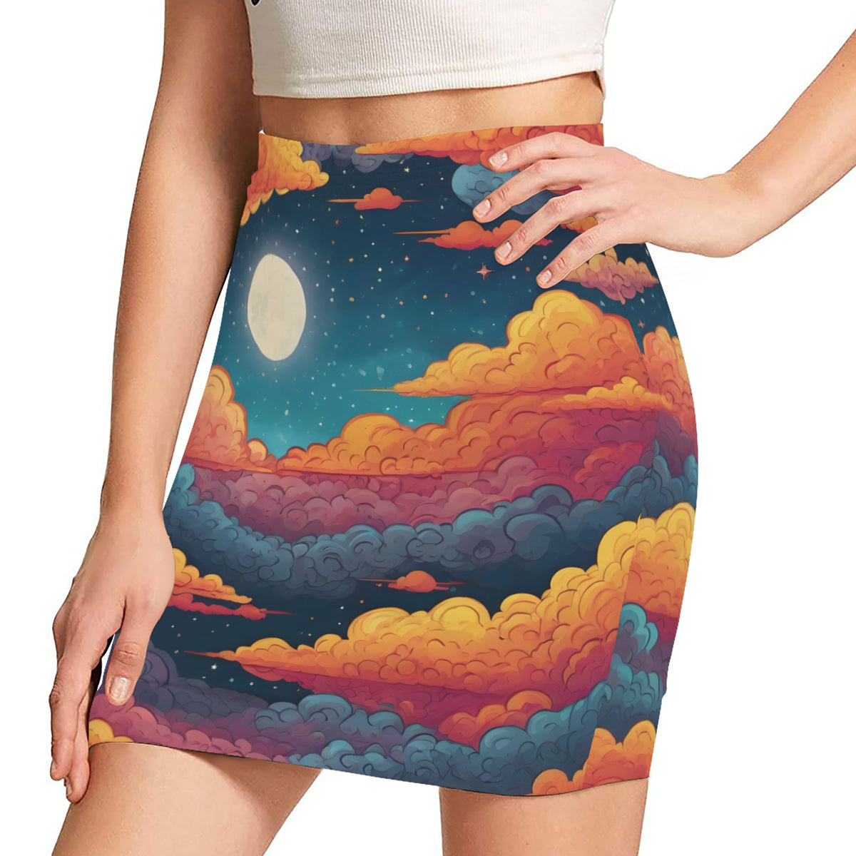 Sky Beauty Abstract Wrap Hip Skirt|Polyester
