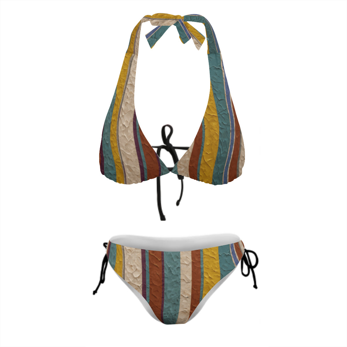 Strip Design Bikini Swimsuit (Multi-Faceted Design)|Polyester+Spandex
