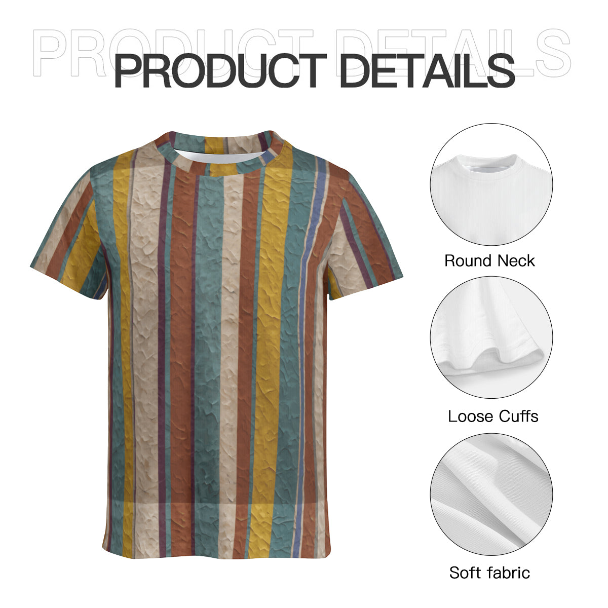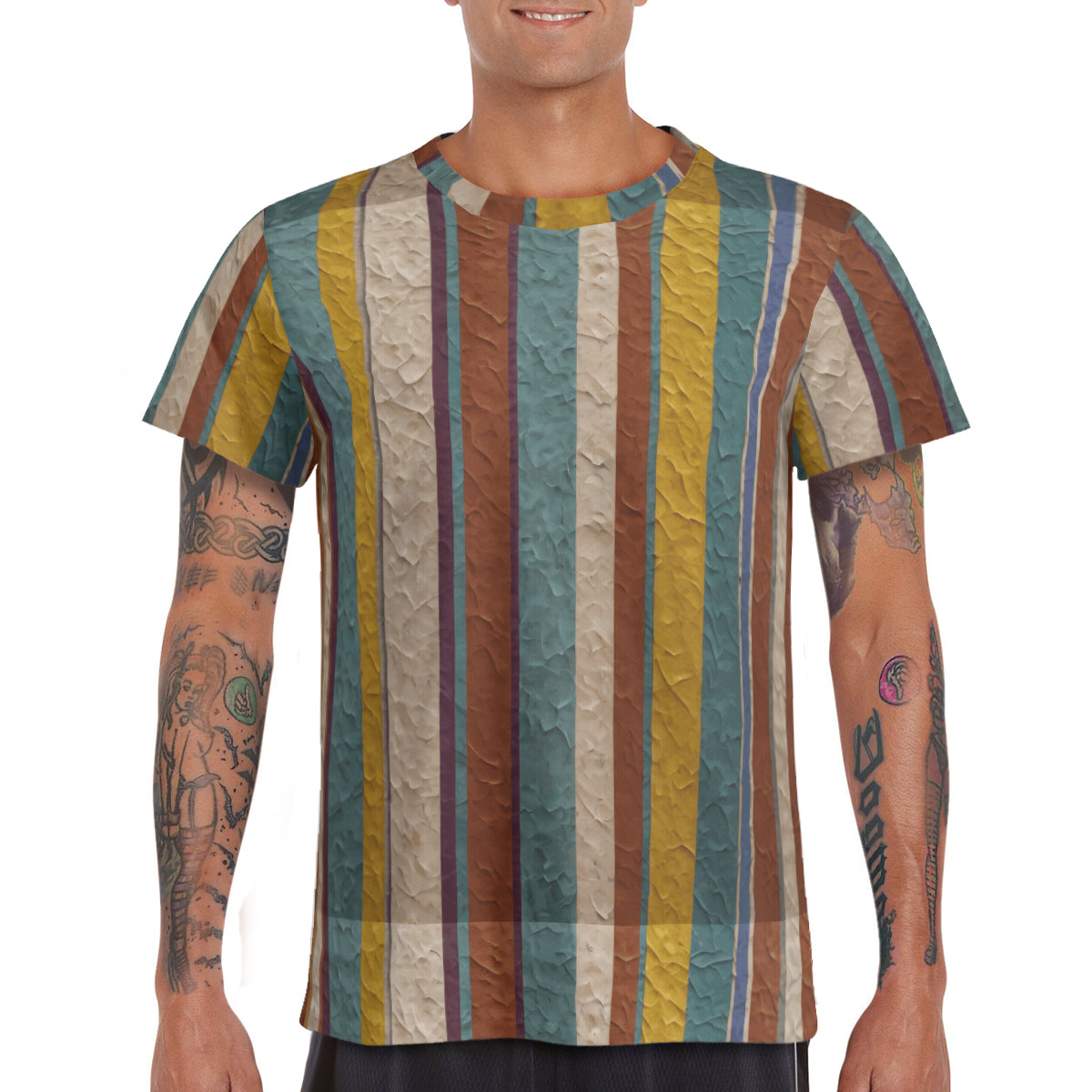 Design area: All-Over Print Strip Design Men's Comfort T-Shirt | 190GSM 95%Polyester 5%Spandex