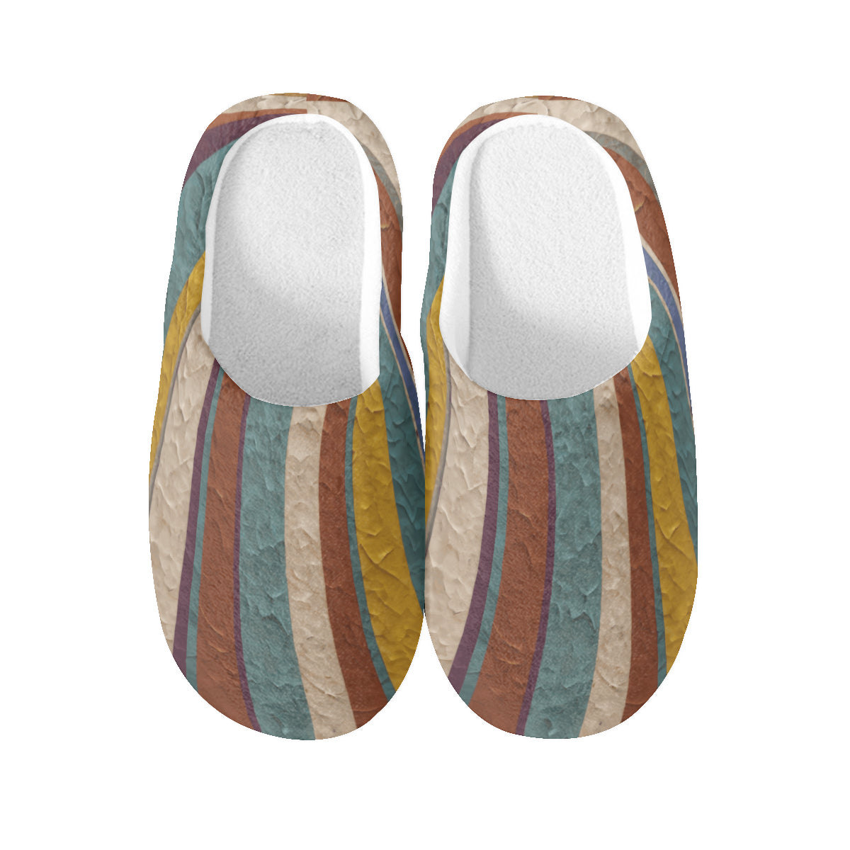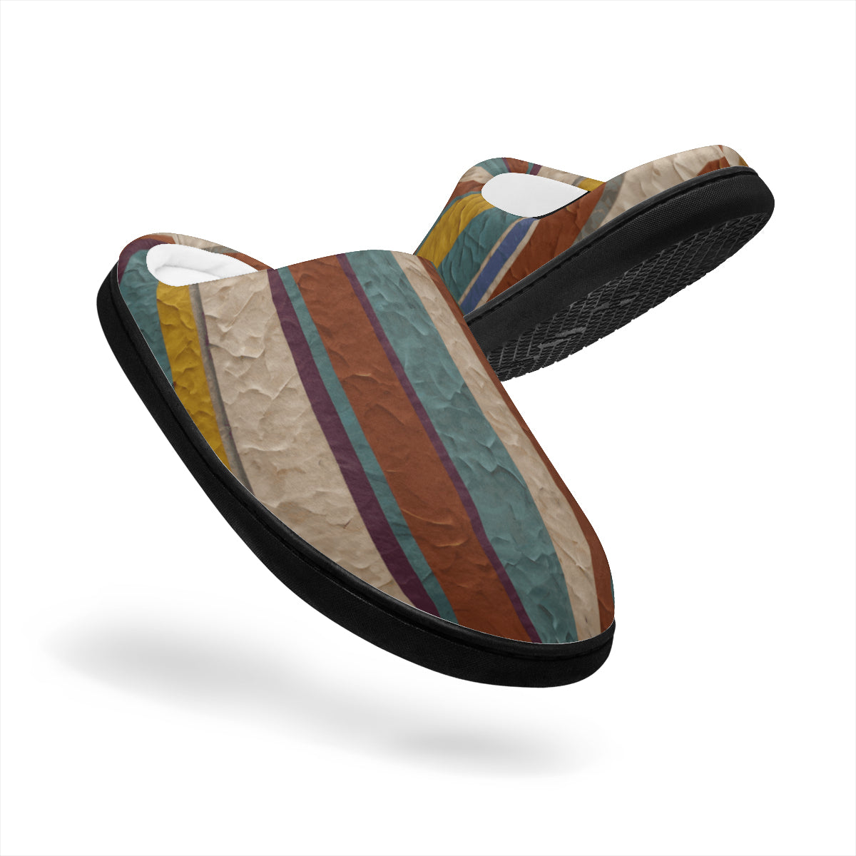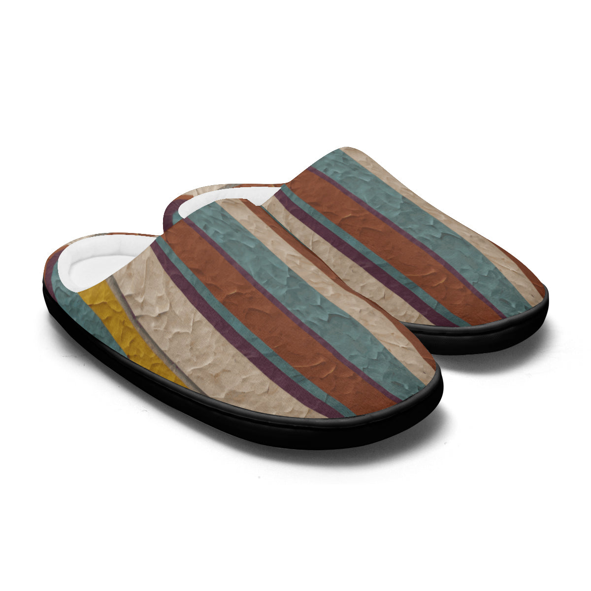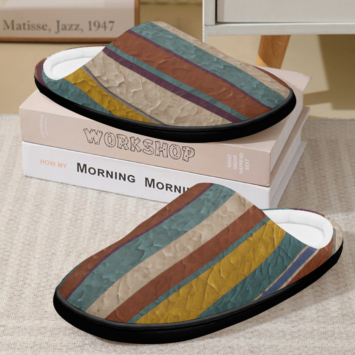 Strip Design Personalized Warm Cotton Slippers | Flannel