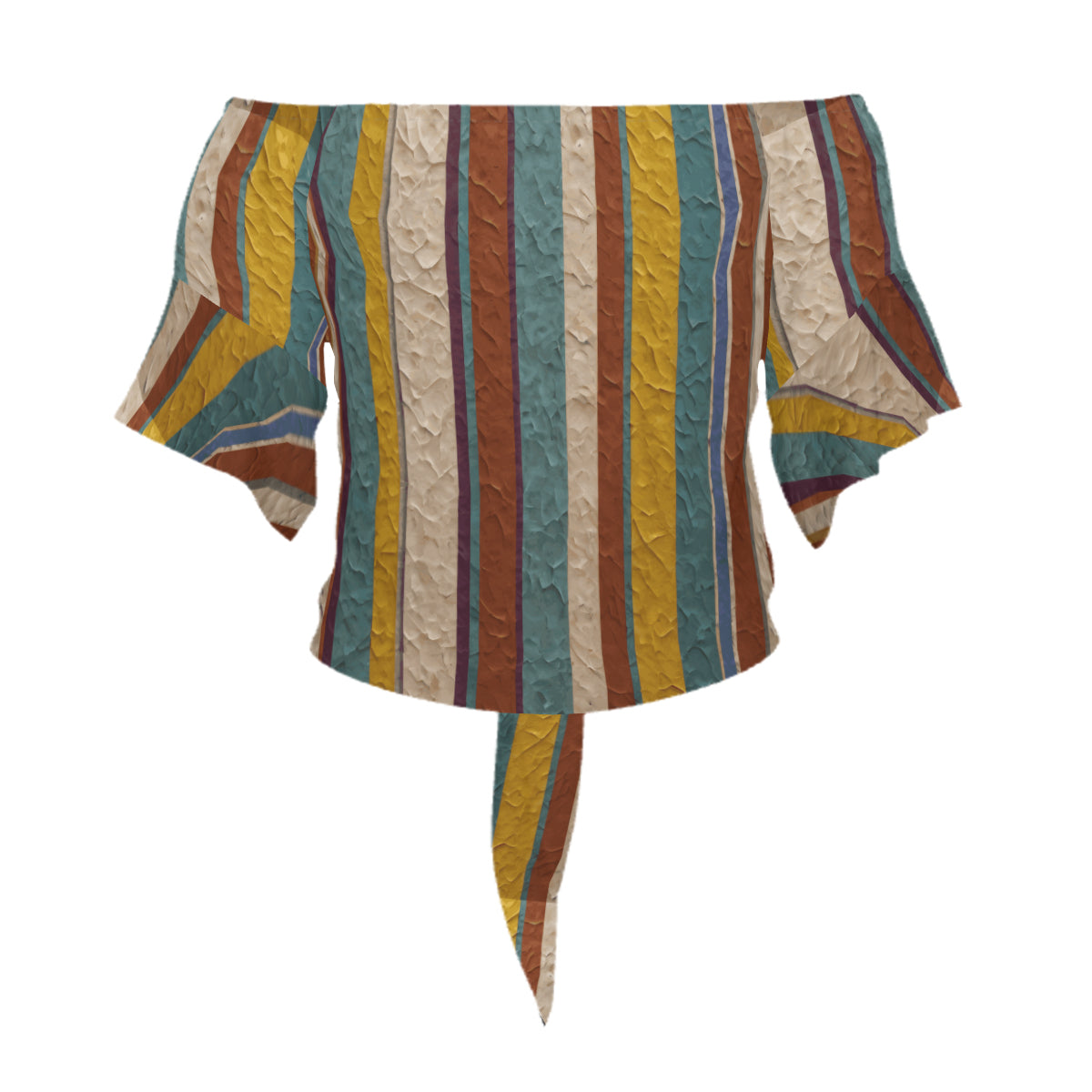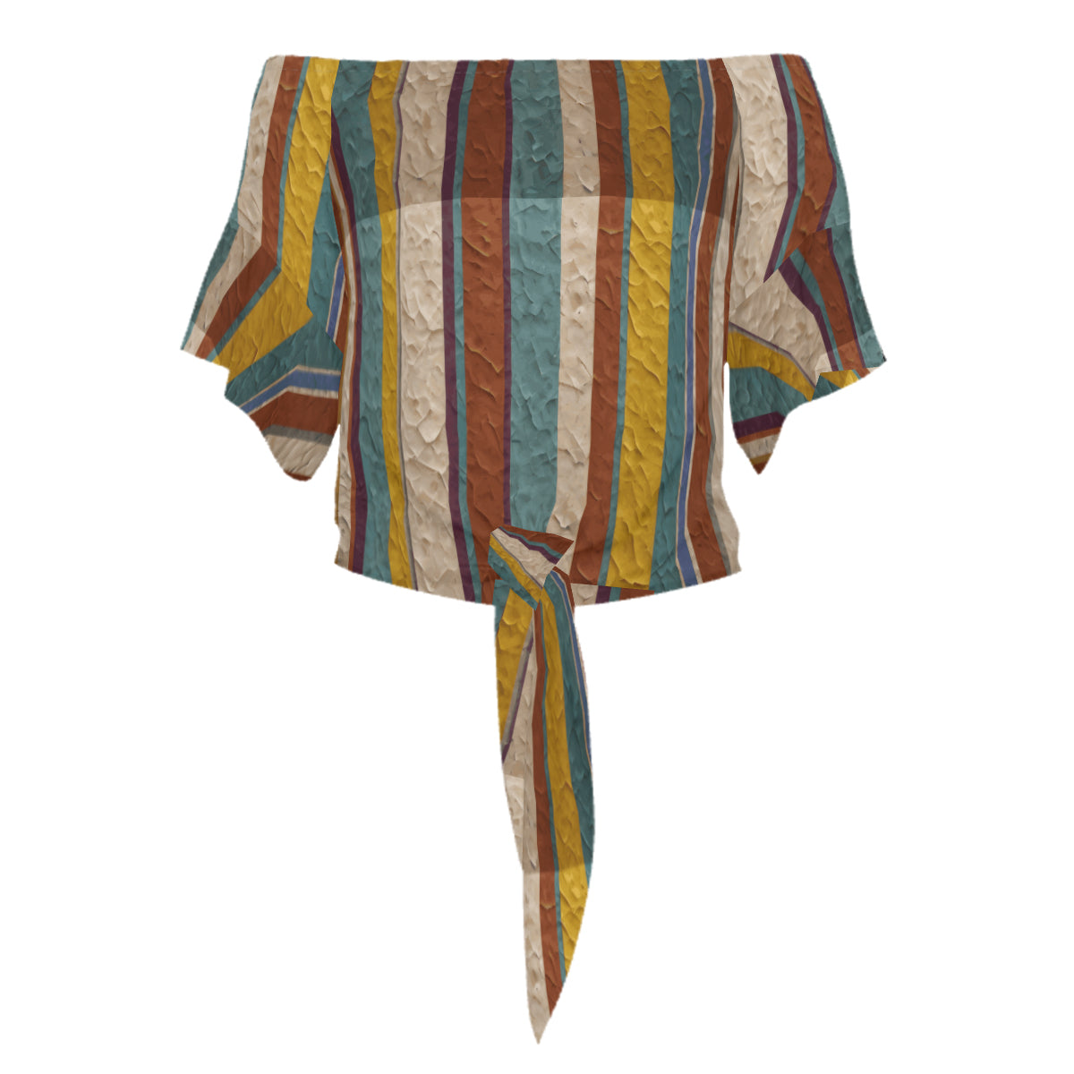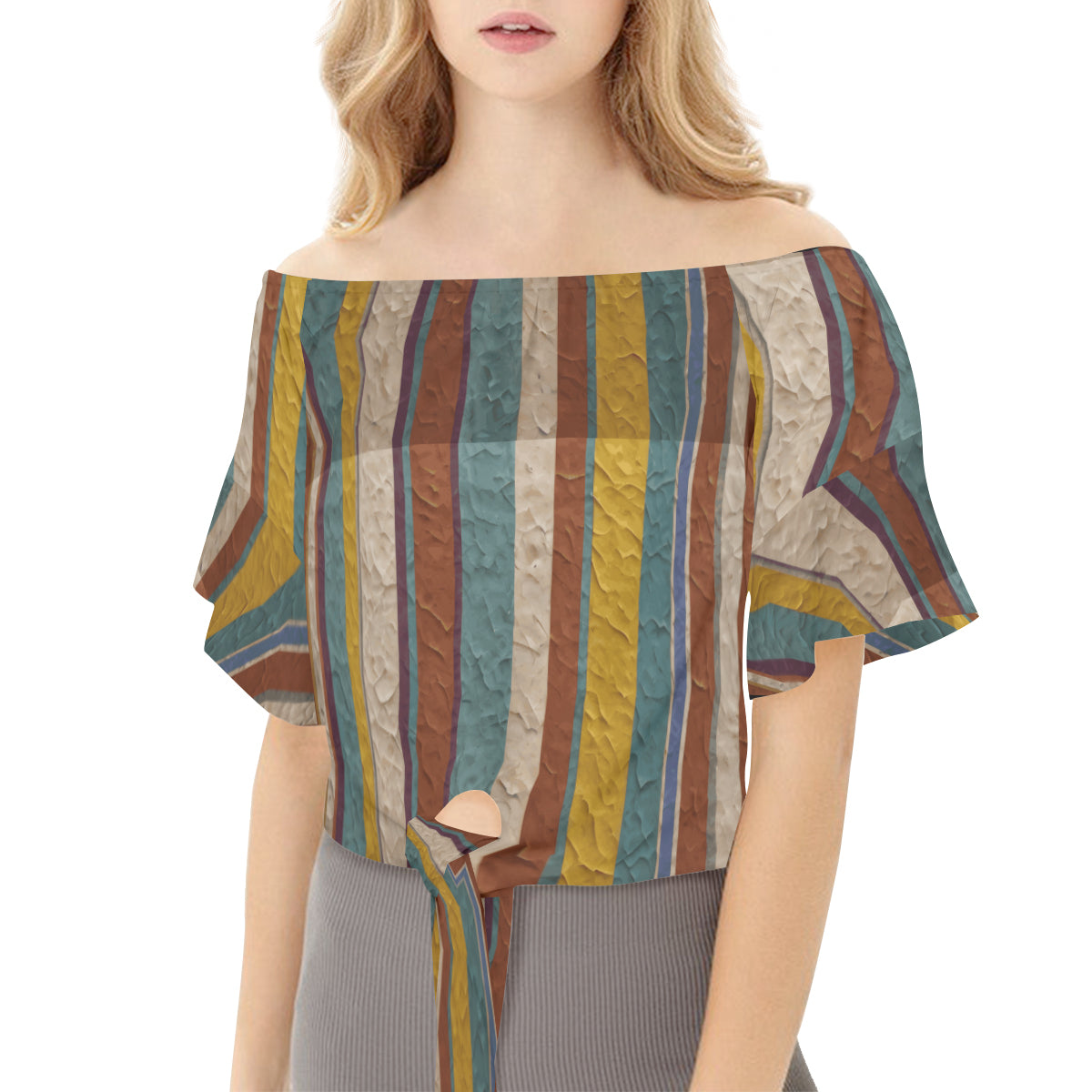Strip Design All-Over Print Women's One-shoulder Tie Short Sleeves T-shirt | Polyester