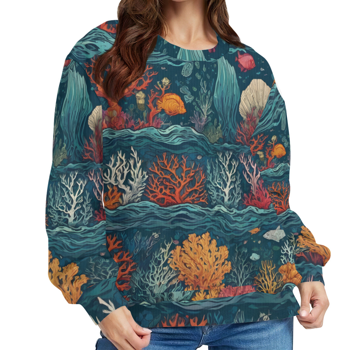 Under Sea Beauty Crew Neck Sweater(Thick Version) | 95% Polyester+5% Spandex