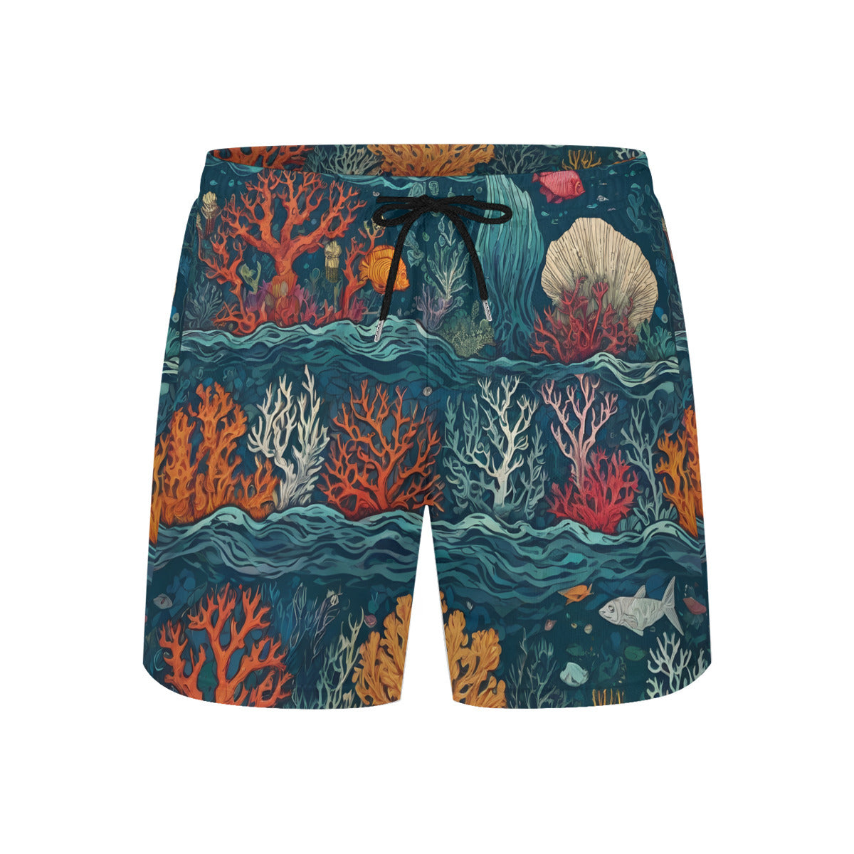 Design area: All-Over Print Under Sea Beauty Men's Casual Shorts Double-Layer Sports Beach Pants (Short) | Polyester