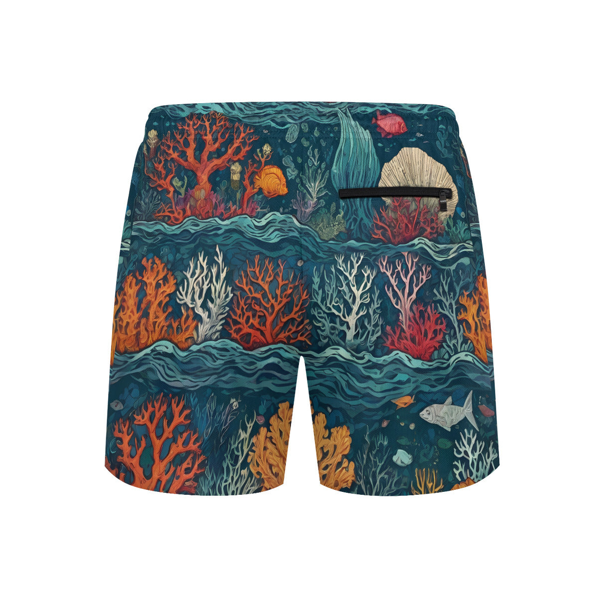 Design area: All-Over Print Under Sea Beauty Men's Casual Shorts Double-Layer Sports Beach Pants (Short) | Polyester