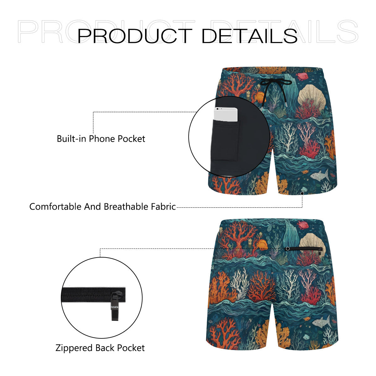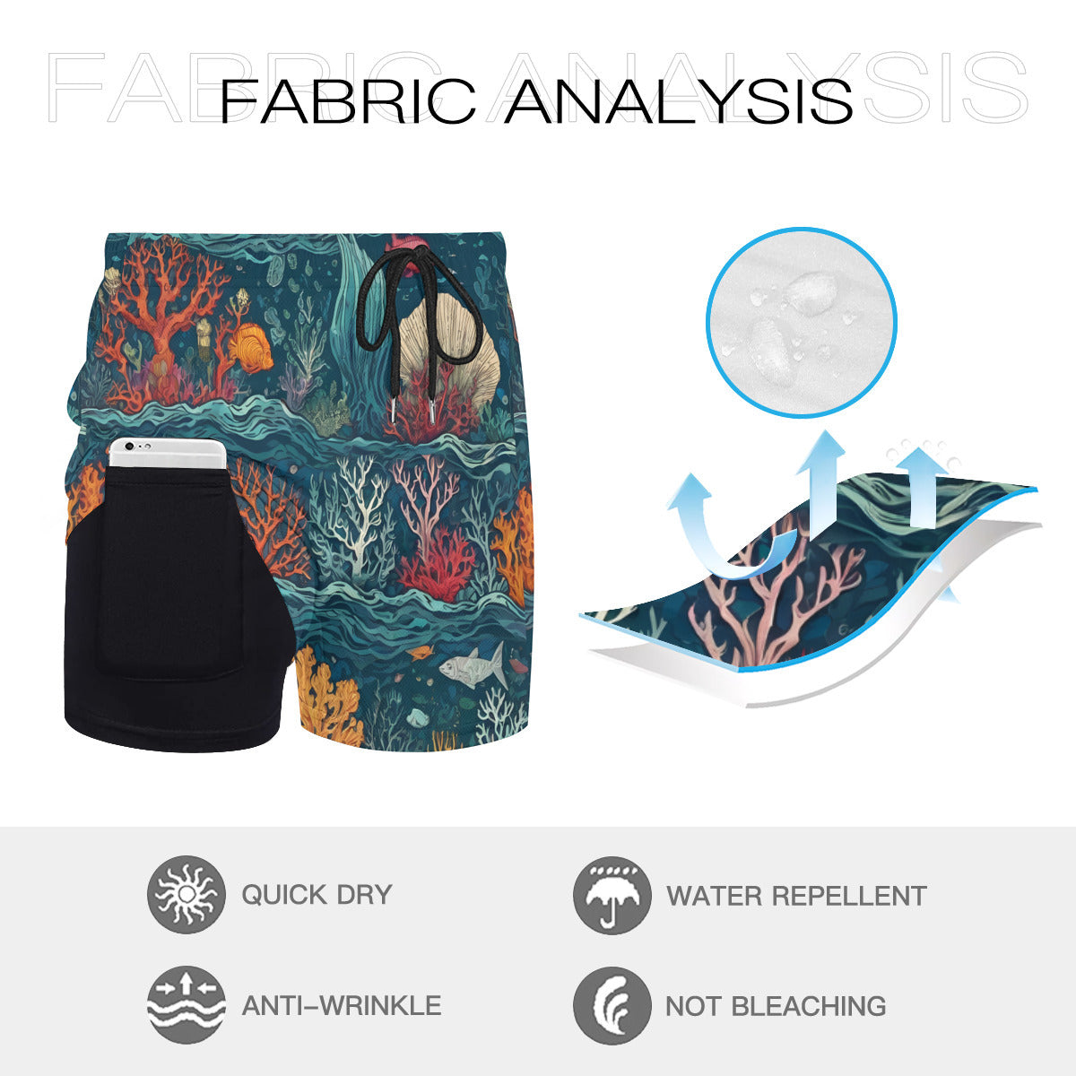 Under Sea Beauty Men's Casual Shorts Double-Layer Sports Beach Pants (Short) | Polyester