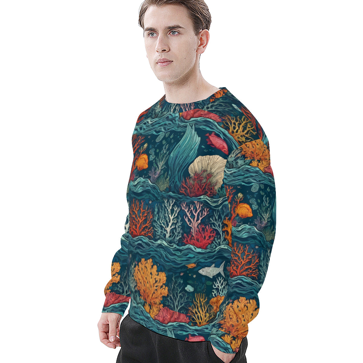 Design area: All-Over Print Under Sea Beauty Men's O-Neck EU Size Long-Sleeved T-Shirt | 180GSM Cotton