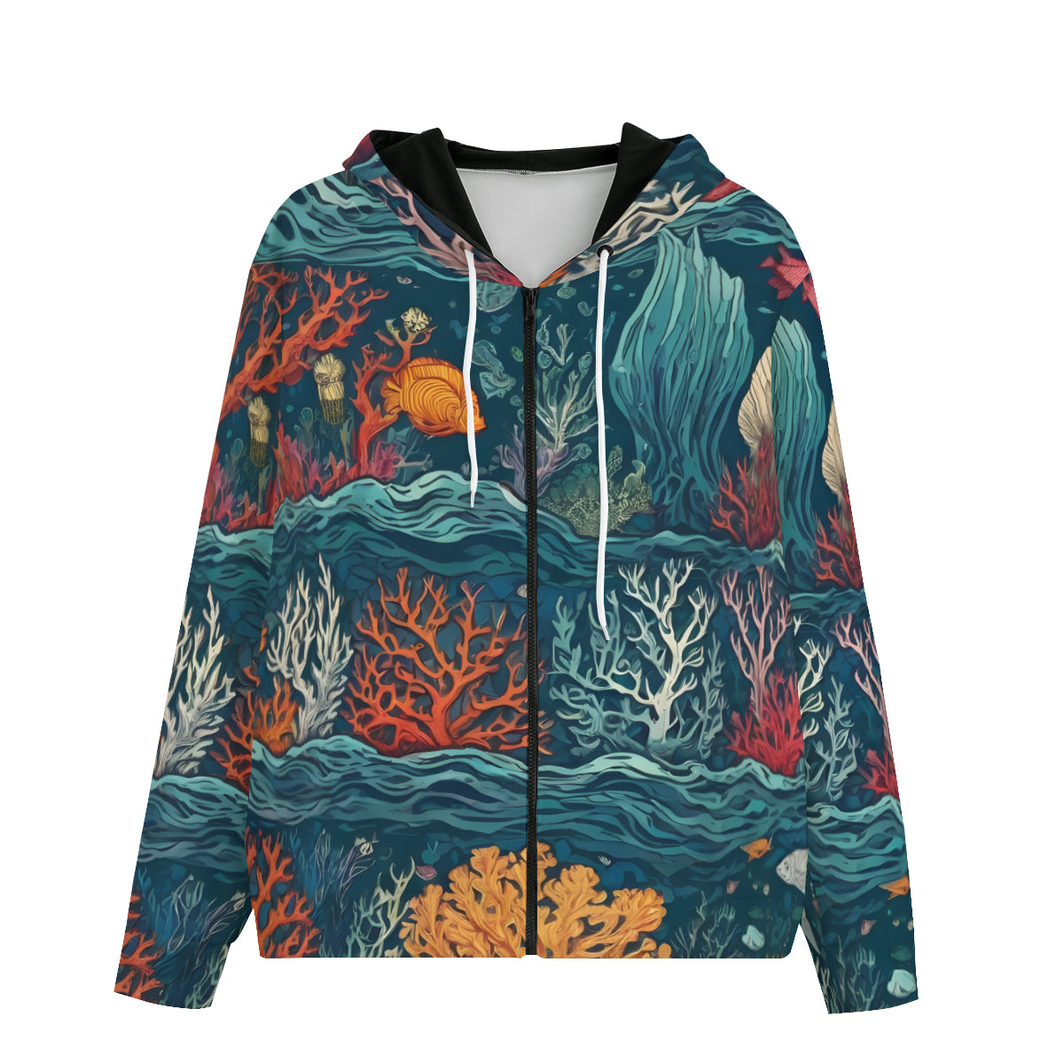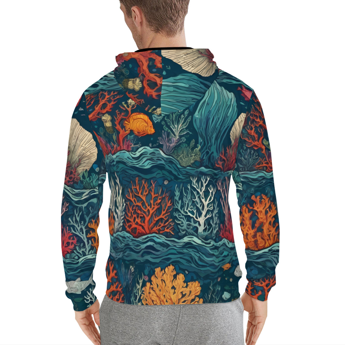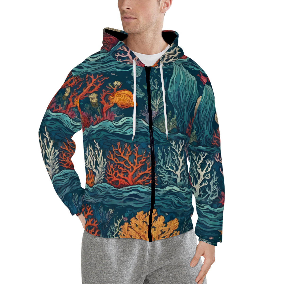 Under Sea Beauty All-Over Print Men's Zip Hoodie with Pockets | Polyester