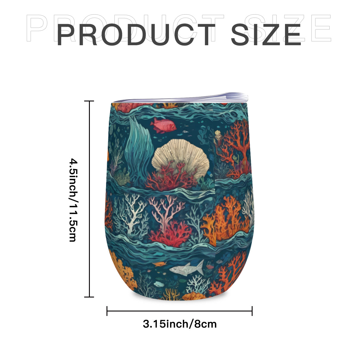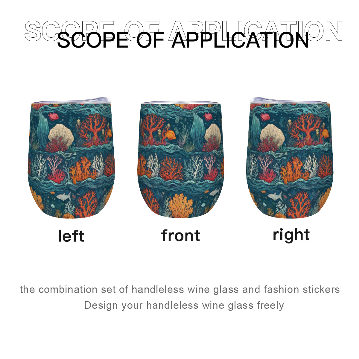 Design area: All-Over Print Under Sea Beauty Stemless Wine Tumbler(350ml/12oz)| Stainless steel 304