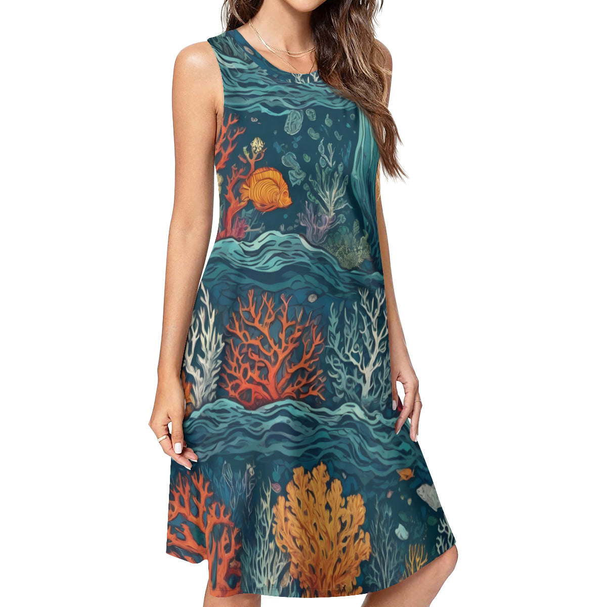 - Casual and comfortable, cool and breathable, unique all-over print sleeveless dress