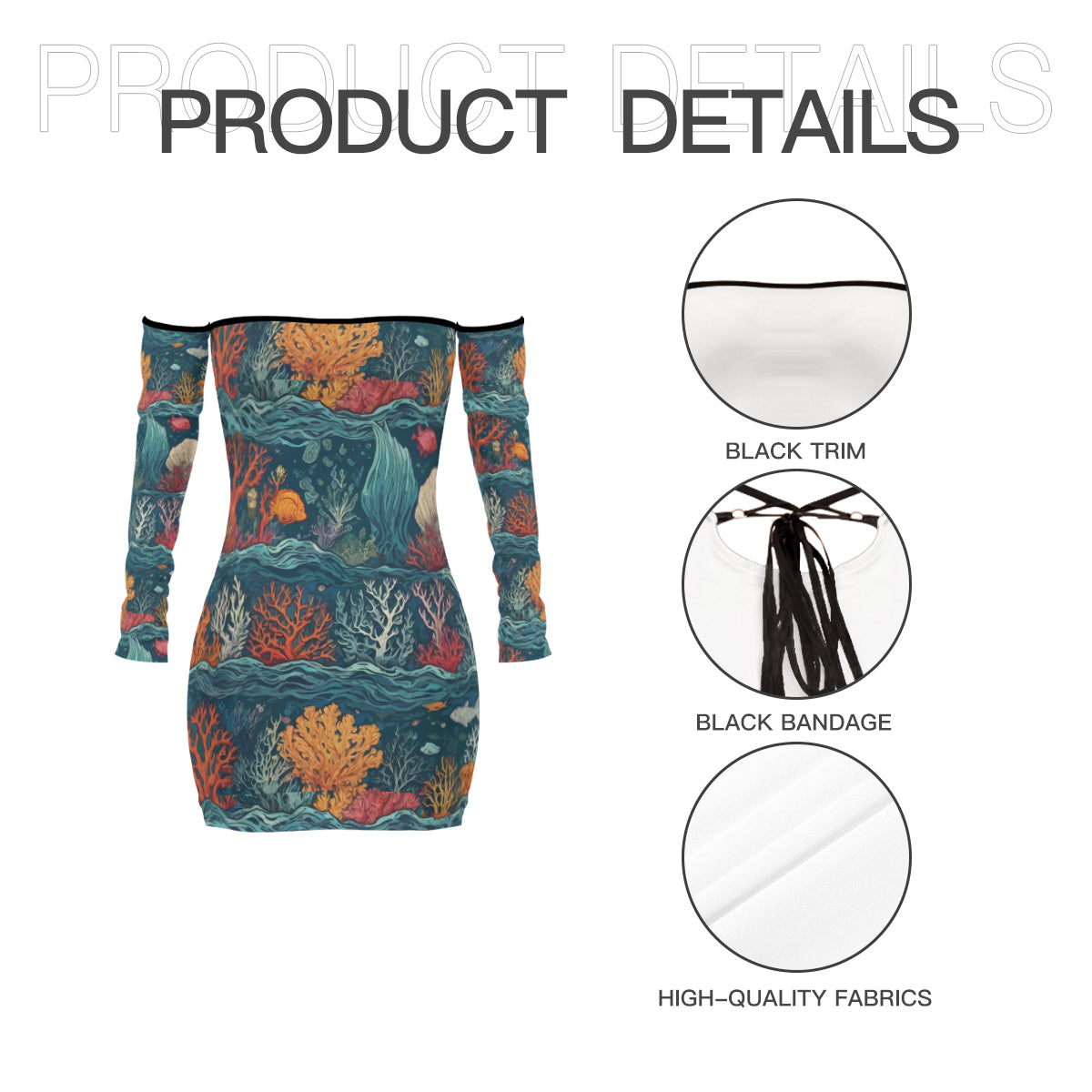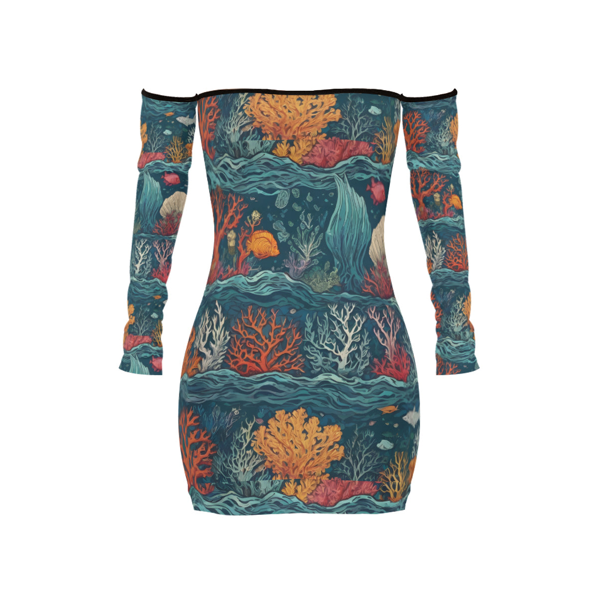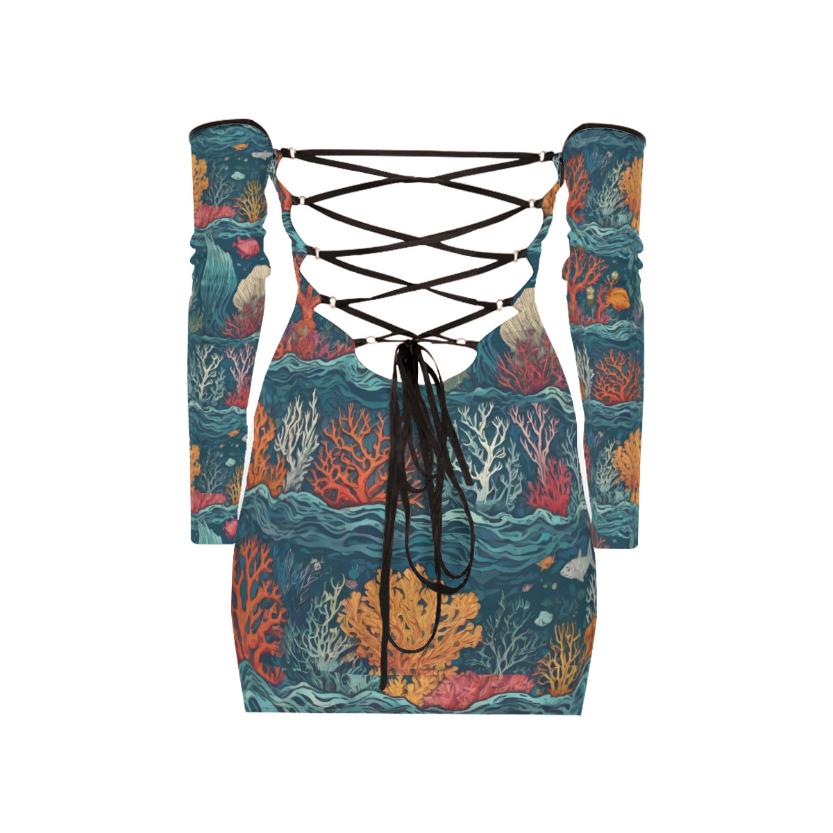 Design area: All-Over Print Under Sea Beauty Women's Off-shoulder Back Lace-up Dress | Polyester