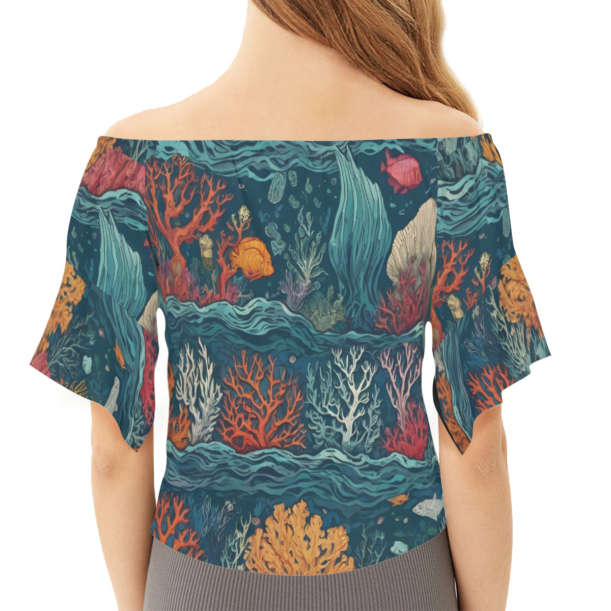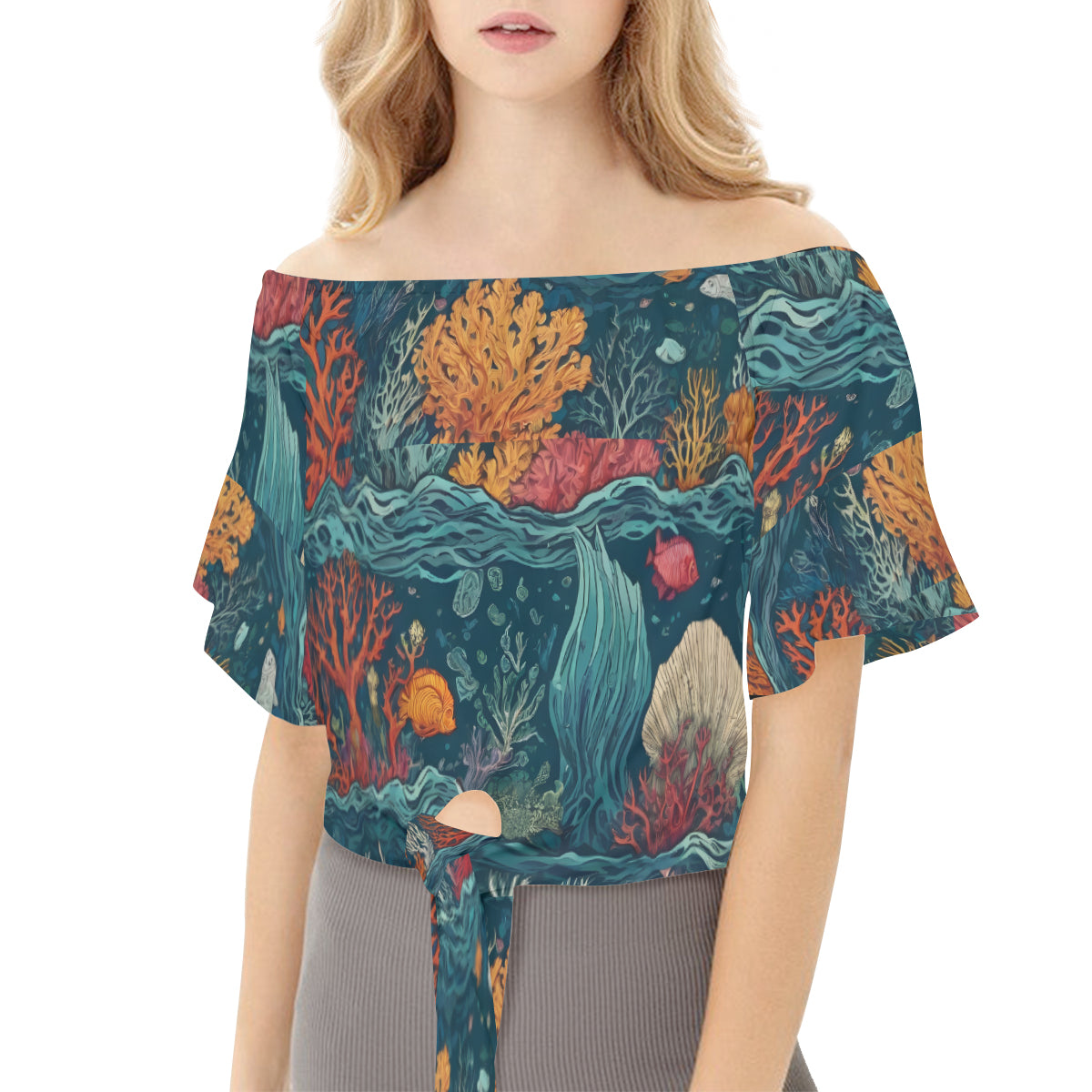 Design area: All-Over Print Under Sea Beauty Women's One-shoulder Tie Short Sleeves T-shirt | Polyester