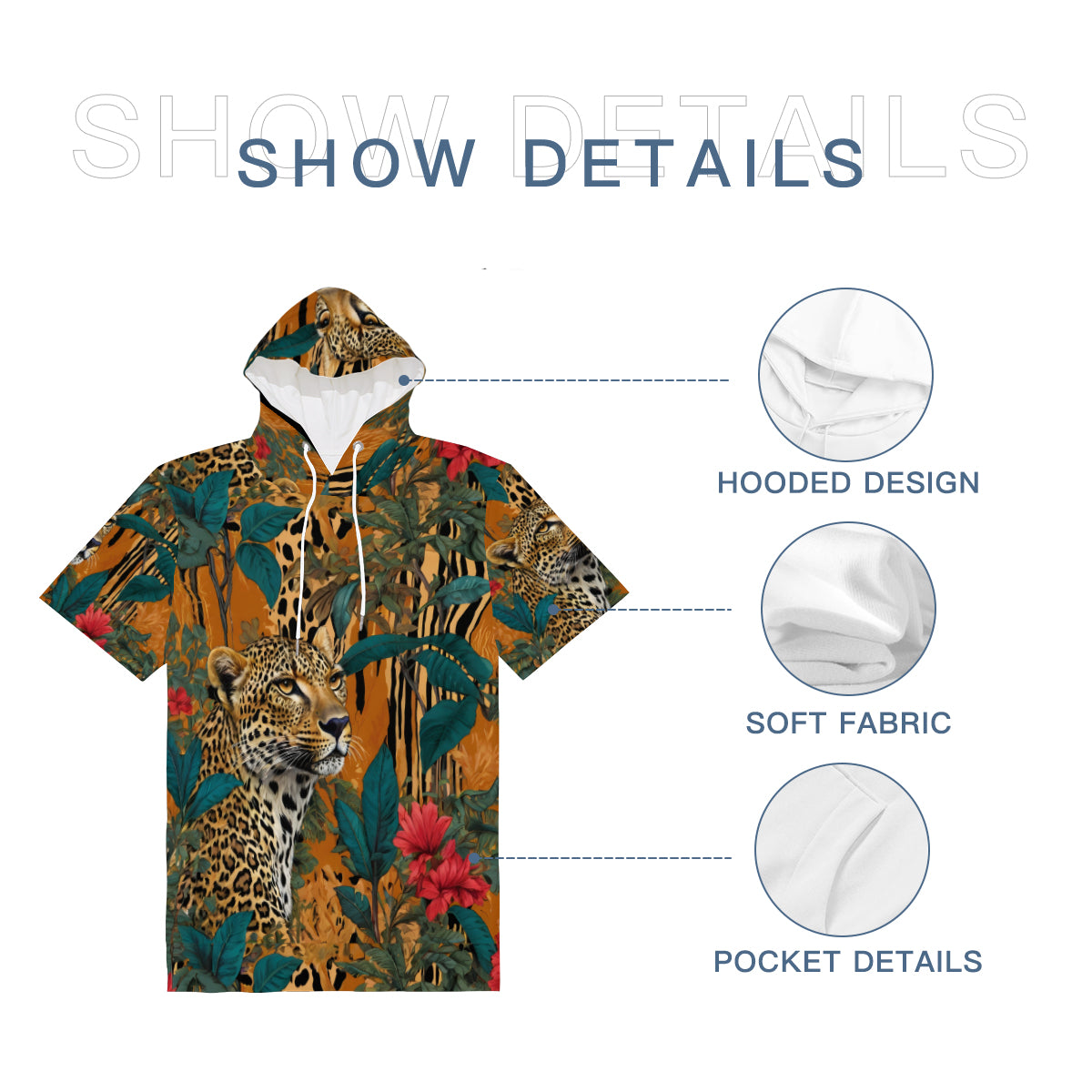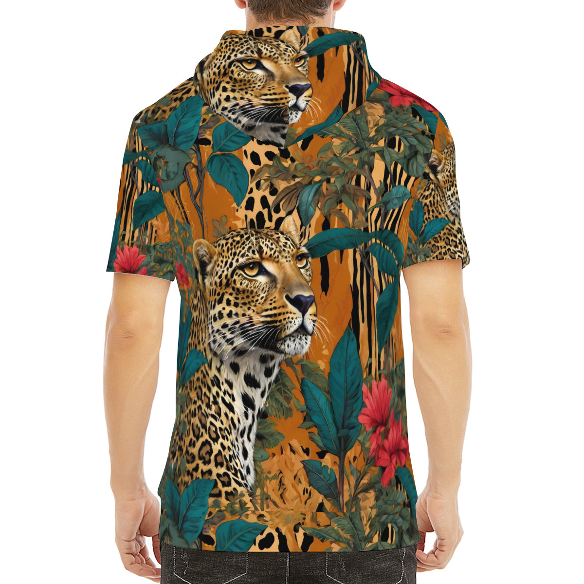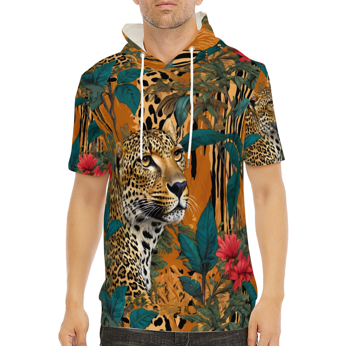 Design area: All-Over Print Warrior Animal Men's Hooded T-shirt丨Cotton