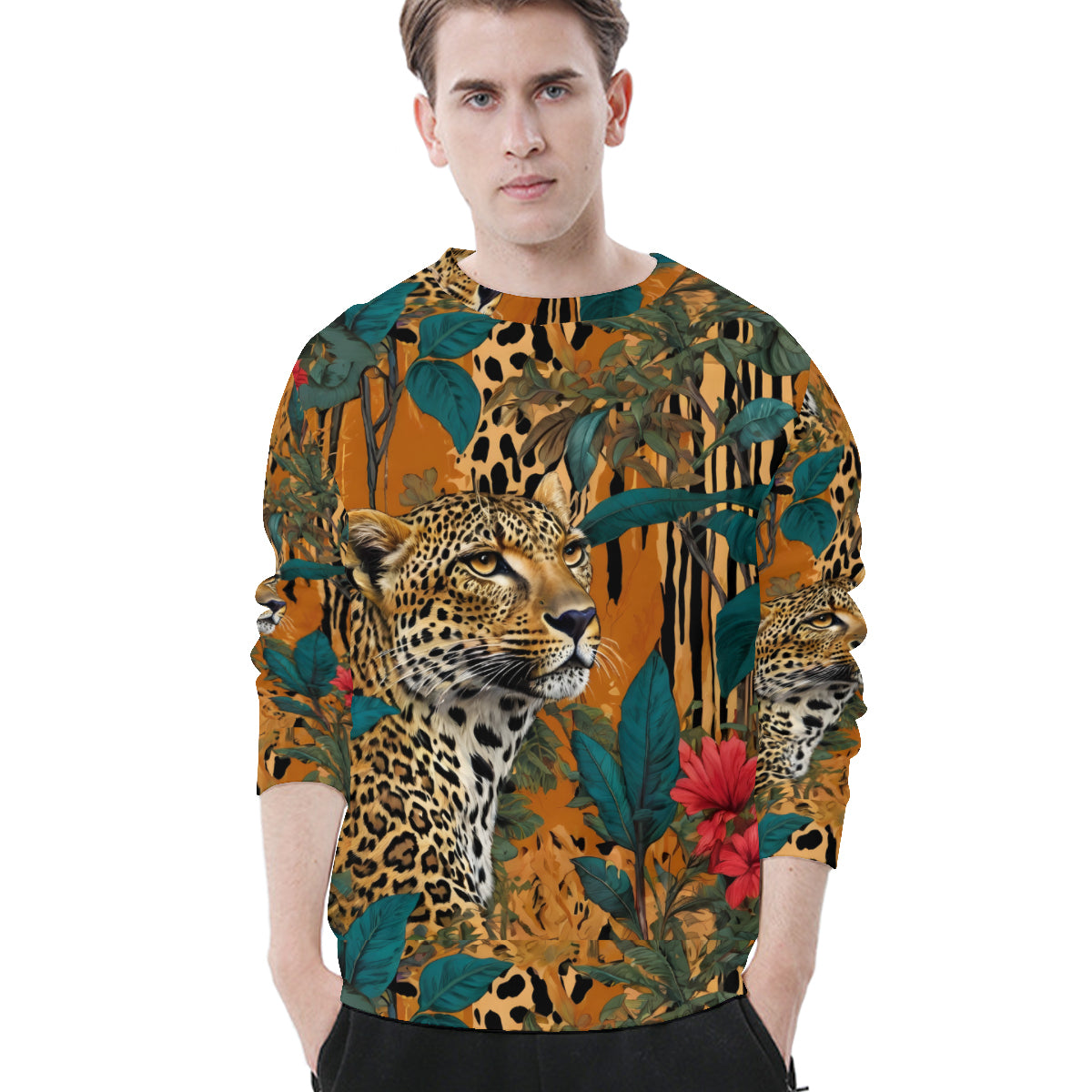 Design area: All-Over Print Warrior Animal Men's O-Neck EU Size Long-Sleeved T-Shirt | 180GSM Cotton