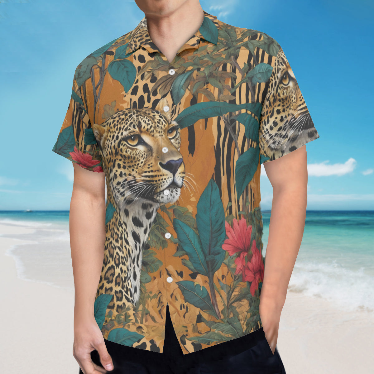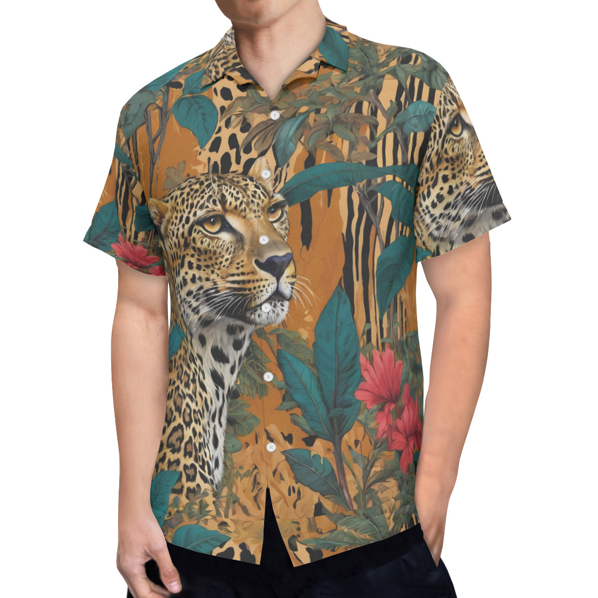 Warrior Leopard All-Over Print Hawaiian Shirt(No chest pocket) | Polyester